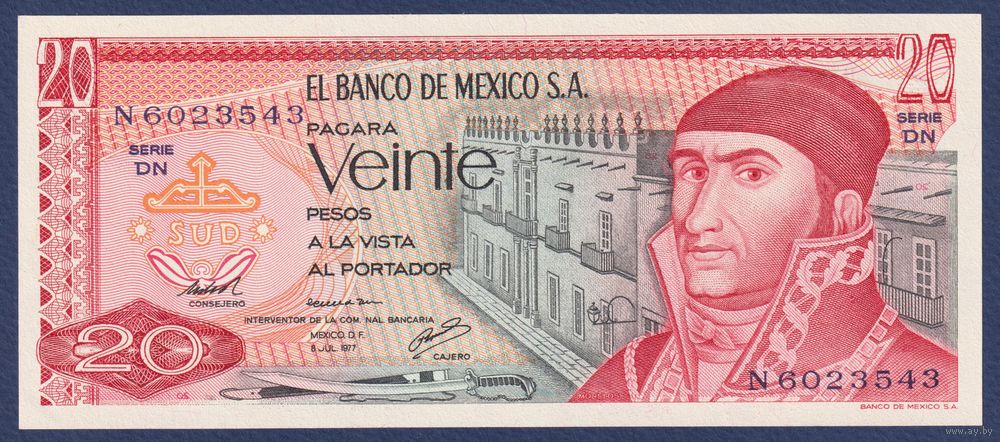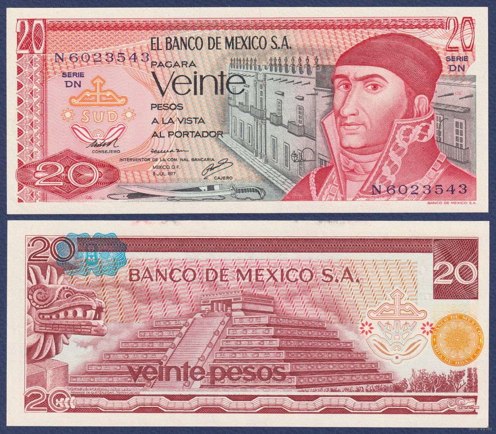 Мексика, 20 песо 1977 г., P-64d (DG, священник Хосе Мария Морелос), UNC