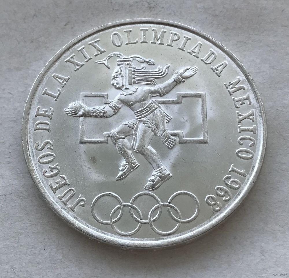 Мексика 25 песо 1968 - Летние Олимпийские игры 1968, Мехико - серебро, UNC!