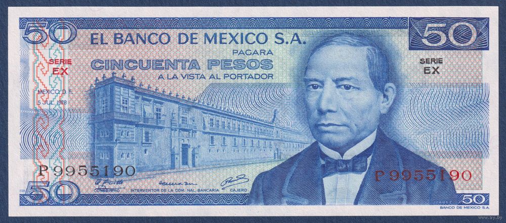 Мексика, 50 песо 1978 г., P-65c (EX, президент Бенито Хуарес), UNC