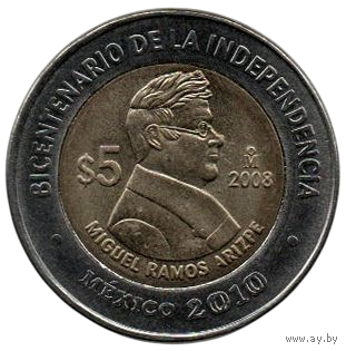 МЕКСИКАНСКИЕ СОЕДИНЁННЫЕ ШТАТЫ. 5 ПЕСО 2008. Мигель Рамос Ариспе. Двухсотлетие независимости. БИМЕТАЛЛ