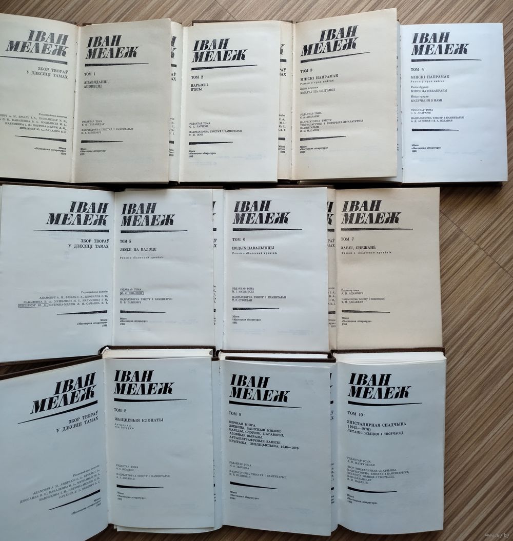 Збор твораў Івана Мележа ў 10 тамах, выдадзены ў Мінску (выдавецтва «Мастацкая літаратура», 1979–1985), з'яўляецца найбольш поўным выданнем спадчыны класіка беларускай літаратуры. Ён уключае раманы «Людзі на балоце», «Подых навальніцы», «Завеі, снежань», «Мінскі напрамак», аповесці, апавяданні, публіцыстыку і эпісталярную спадчыну. Гэта выданне — найбольш аўтарытэтная крыніца для вывучэння творчасці Івана Мележа.