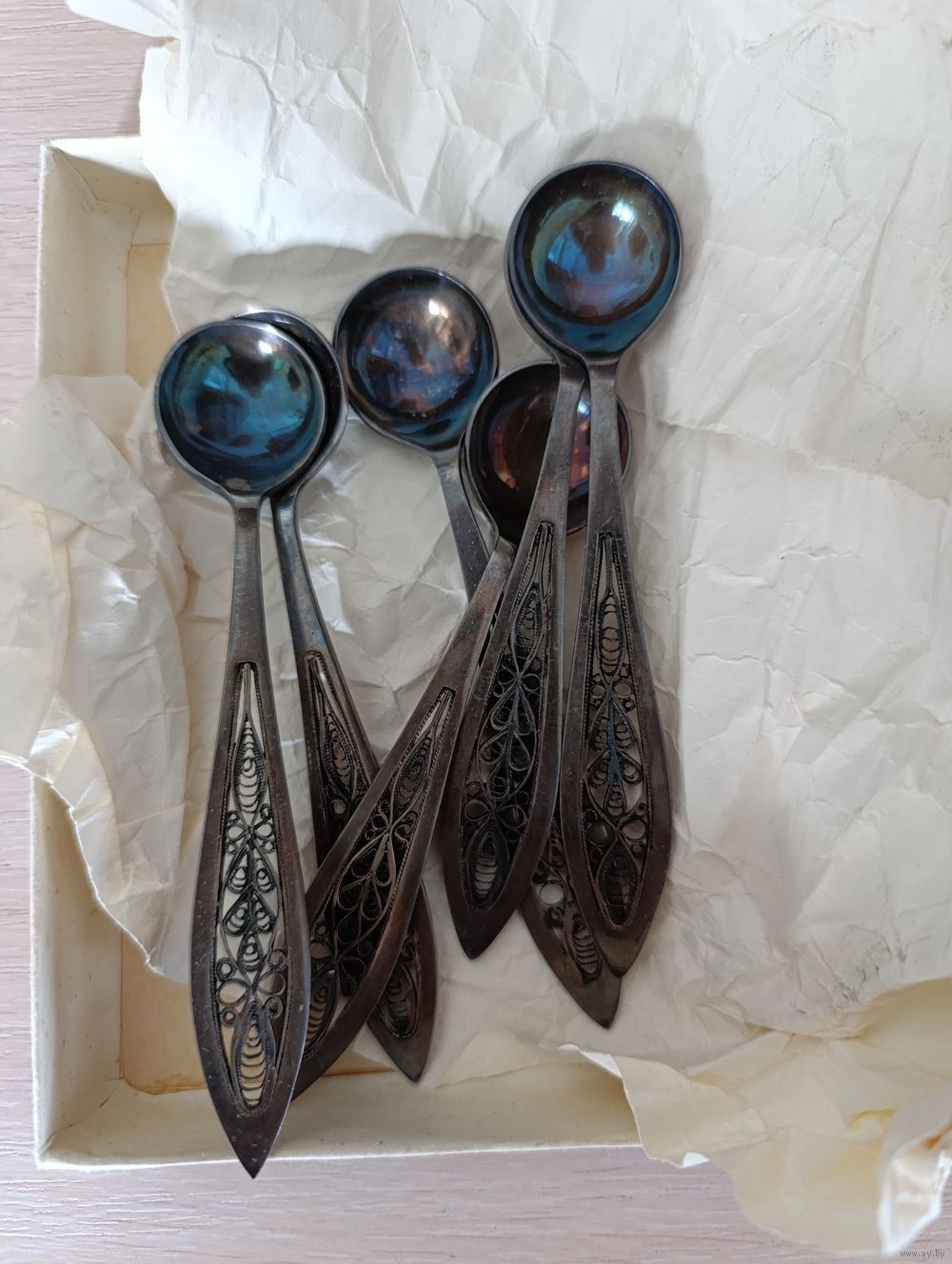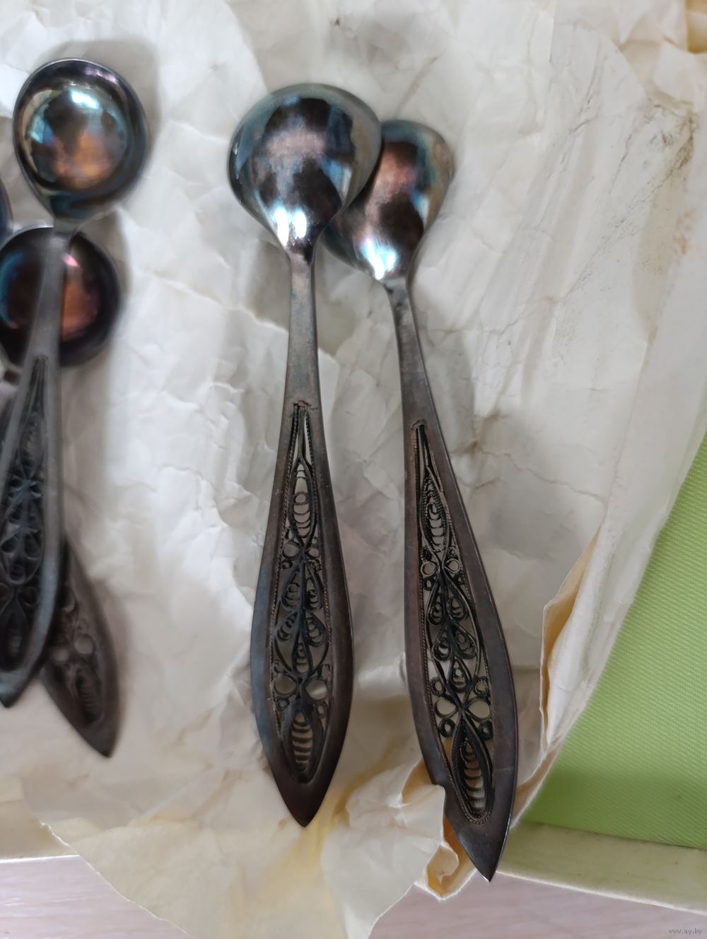 Набор мельхиоровые винтажные чайные ложки. В количестве 6 шт. Состояние хорошее. Есть коробка от них . Смотрите по фото.
