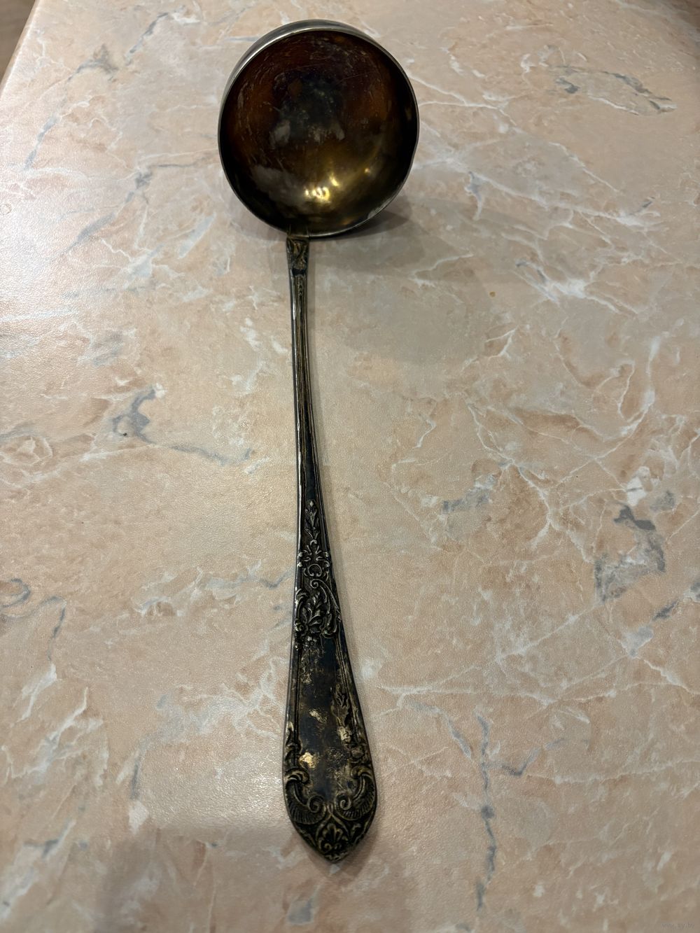 Половник мельхиоровый со следами использования.Имеется клеймо производителя-Кольчугино.