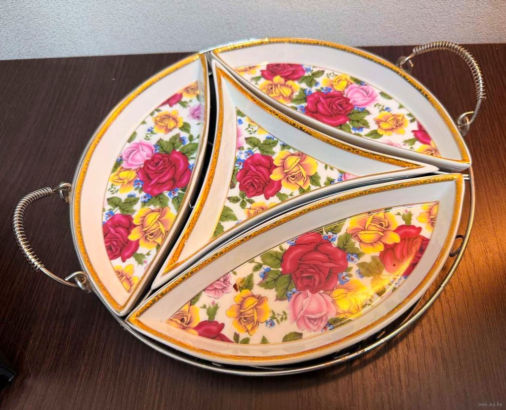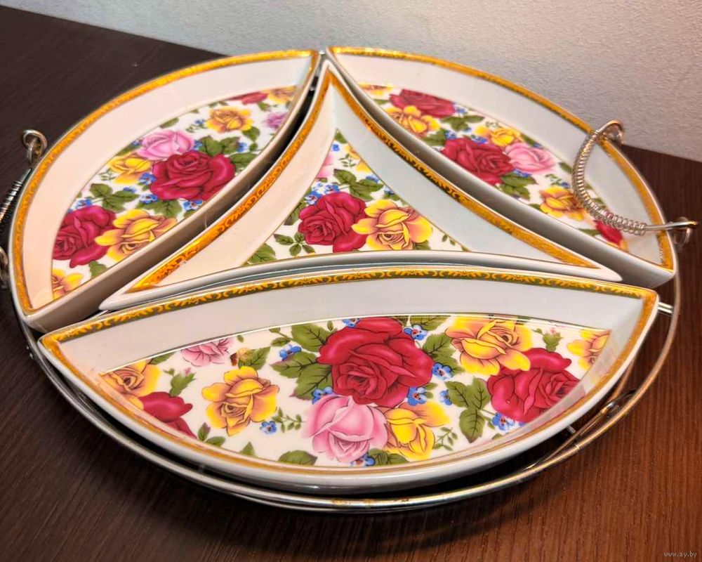 Менажница керамическая 4 отдельных друг от друга предмета в металлическом подносе . состояние идеальное