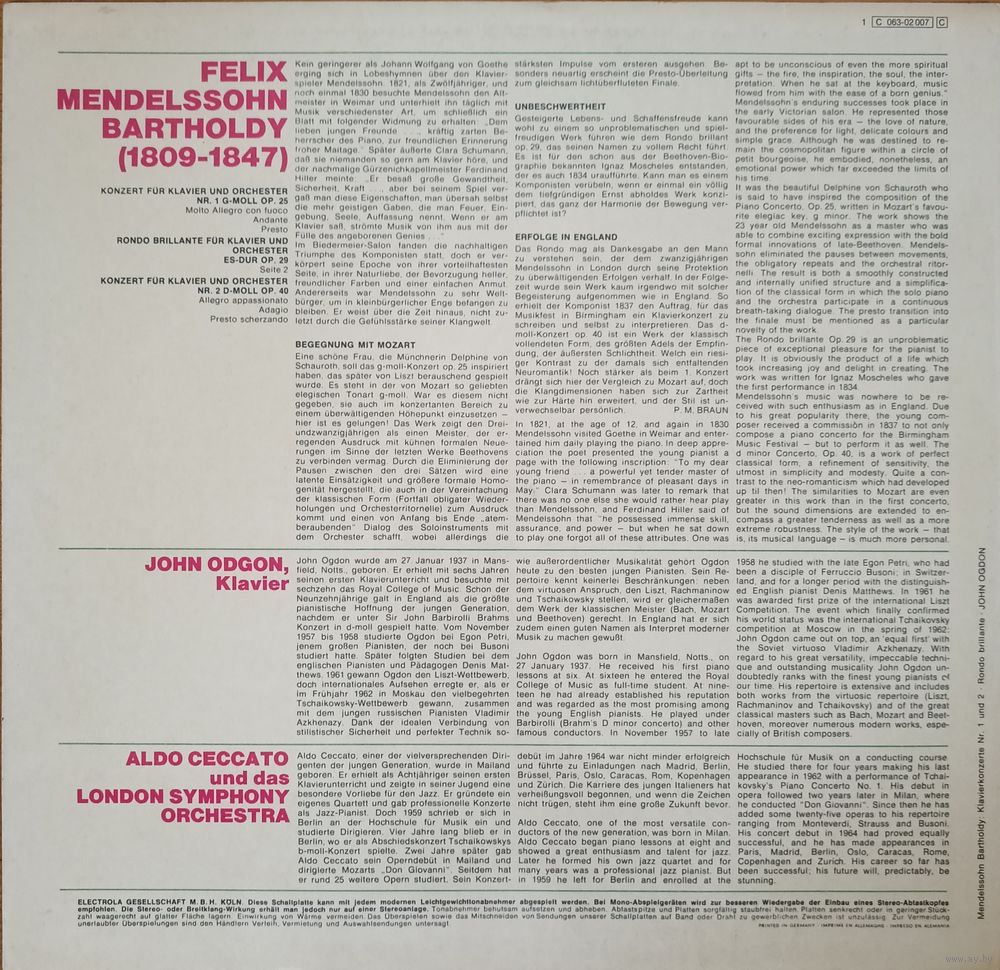 Mendelssohn-Bartholdy, John Ogdon, London Symphony Orchestra, Aldo Ceccato – Klavierkonzerte Nr. 1 G-Moll Op. 25 Nr. 2 D-Moll Op. 40 Rondo Brillante Es-Dur Op. 29