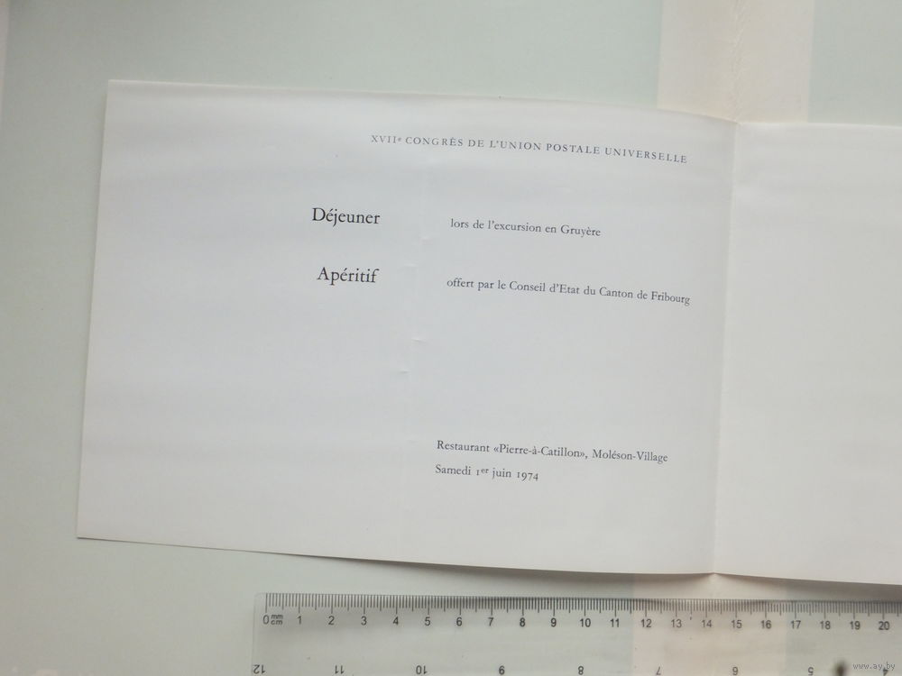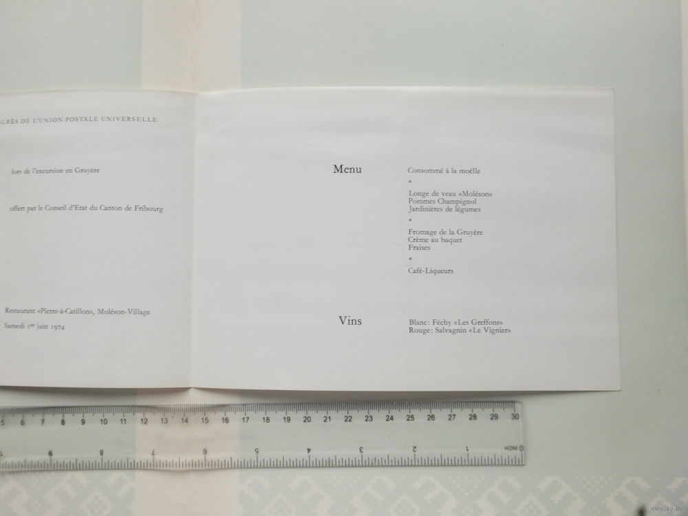Меню ресторана Швейцария дипломатический обед автографы дипломатов 1974 г