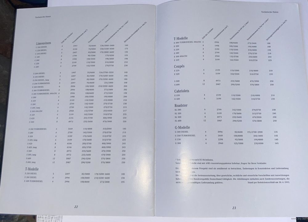 Mercedes рекламный буклет брошюра. Весь модельный ряд 1996года.