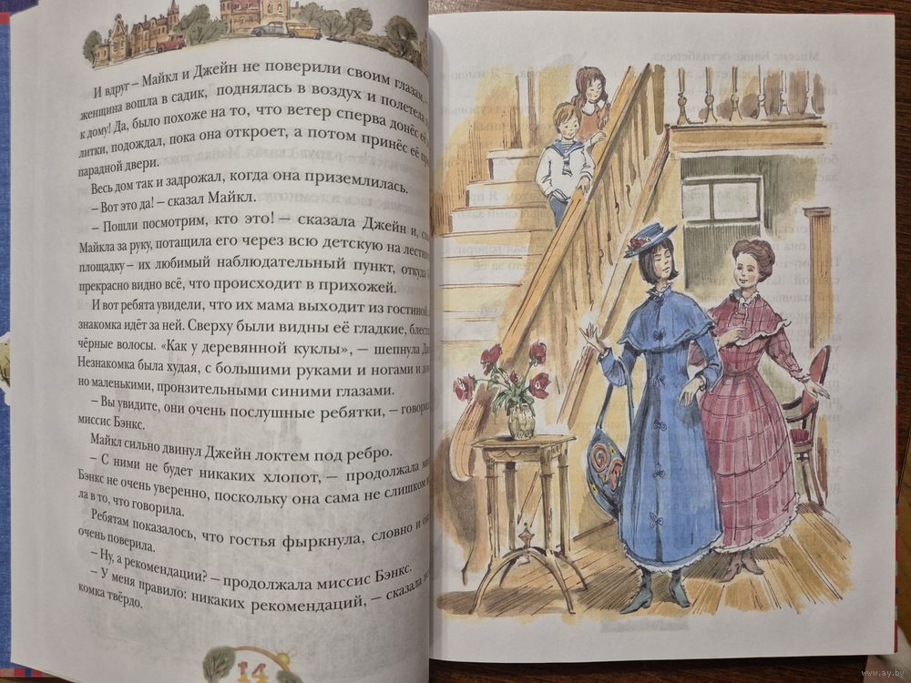 О Мэри Поппинс надо прежде всего сказать, что... Впрочем, замечу только, что, если Мэри Поппинс покажется вам сначала слишком строгой и даже суровой, не пугайтесь. Если бы она была только строгой, ее вряд ли бы так полюбили все без исключения ребята, которым удалось познакомиться с Мэри" .