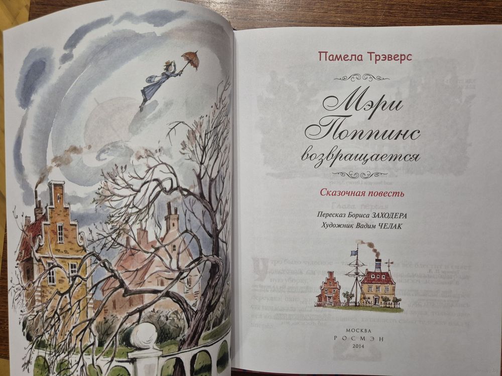 О Мэри Поппинс надо прежде всего сказать, что... Впрочем, замечу только, что, если Мэри Поппинс покажется вам сначала слишком строгой и даже суровой, не пугайтесь. Если бы она была только строгой, ее вряд ли бы так полюбили все без исключения ребята, которым удалось познакомиться с Мэри". Борис Заходер