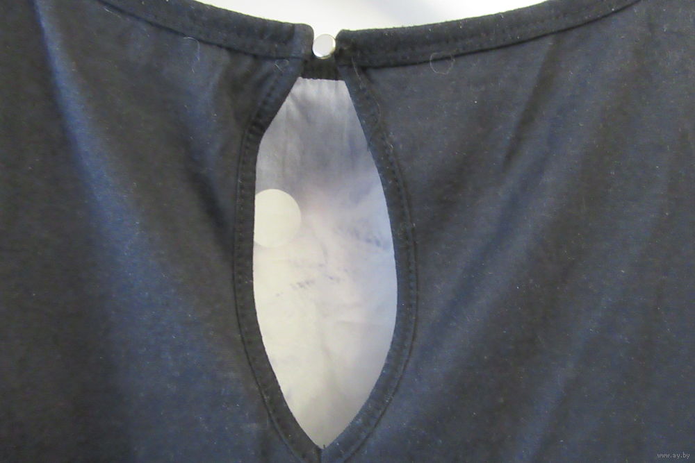 Комбинированный: шелк спереди и трикотаж сзади, с разрезом на спине застегивается на пуговицу, есть стразы.