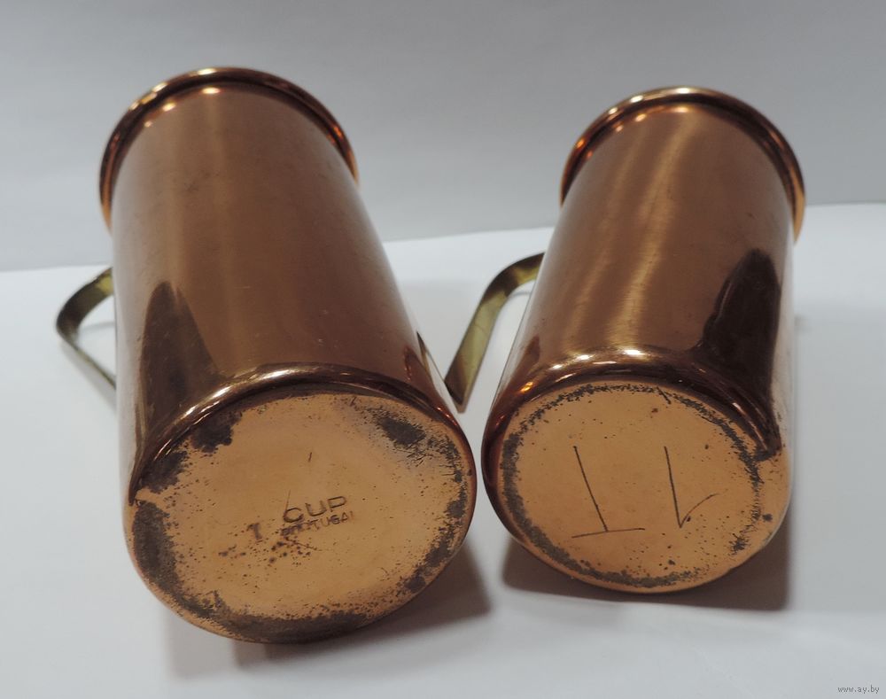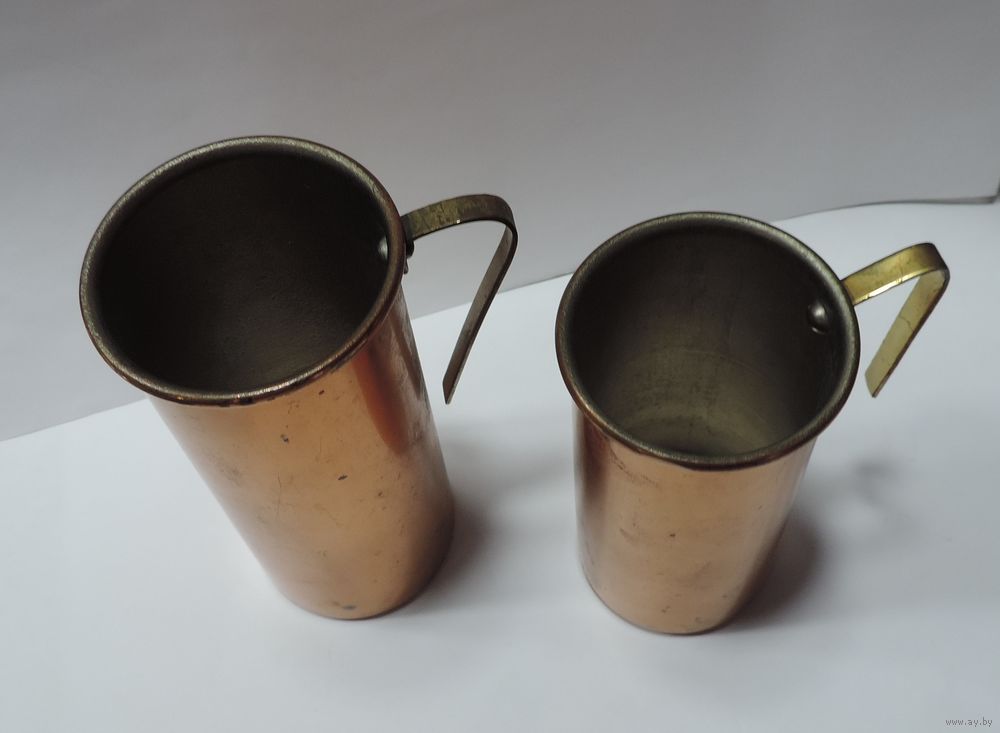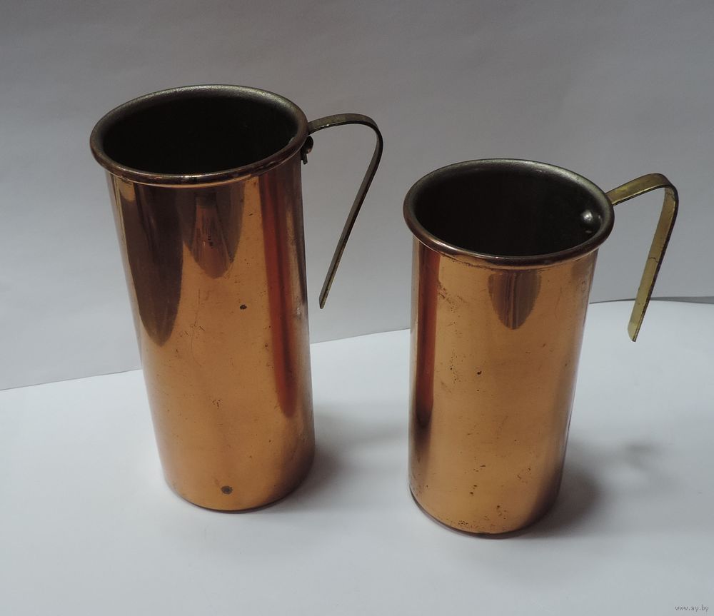 Мерные кружки 70-е годы Европа. Высота 9.5 и 11 см. Медь, латунь.