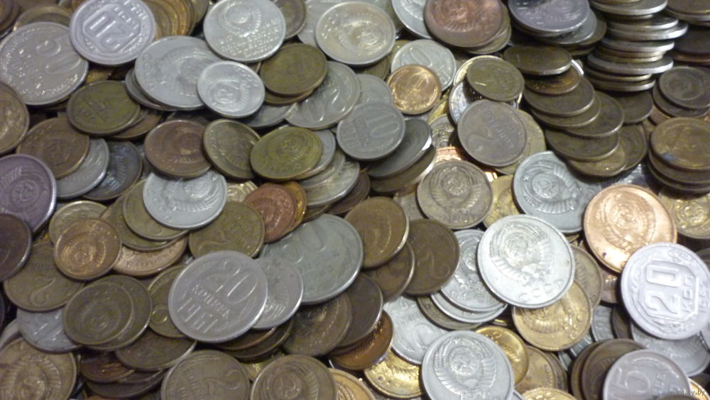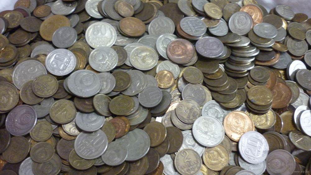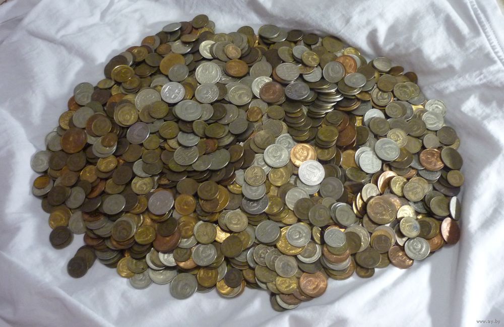Мешок с монетами СССР. Года и состояние разное. Есть хорошие. По весу около 6 кг, для наглядности насыпала в банки по литру так как весов нет.