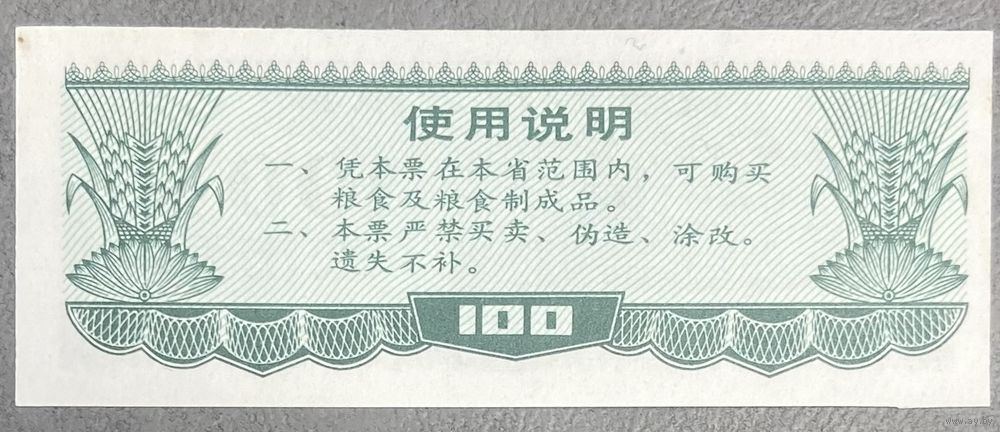 Местные продовольственные талоны провинции Ляонин 1986 год. Китай. С рубля без МЦ.