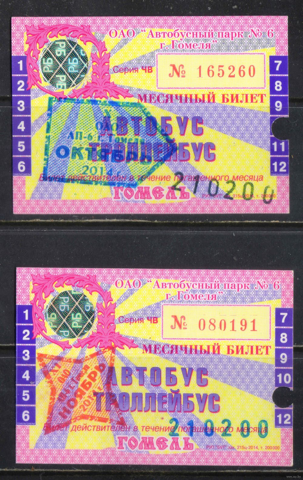 Месячные билеты Гомель 2014