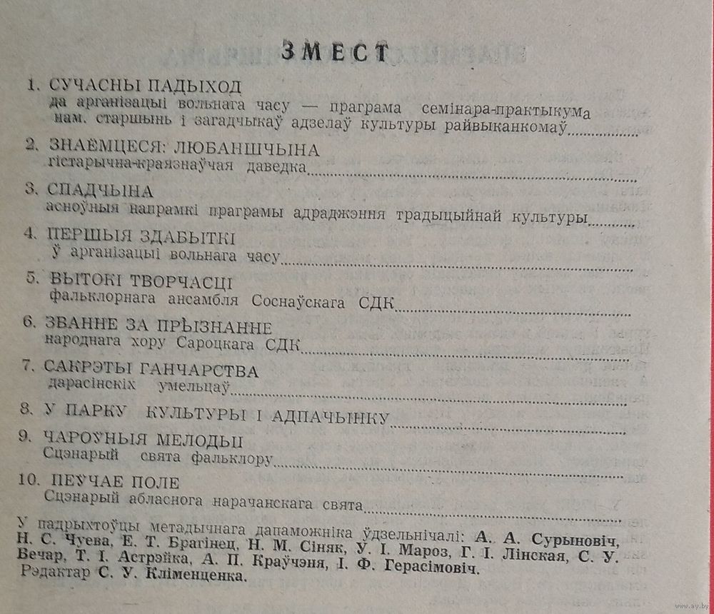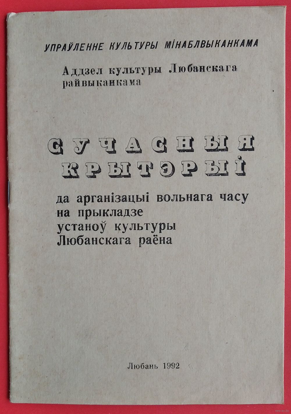 Мэтадычны дапаможнік "Счасныя крытэрыі па вольнаму часу". Упраўленне культуры Мінаблвыканкама. 1992 г.