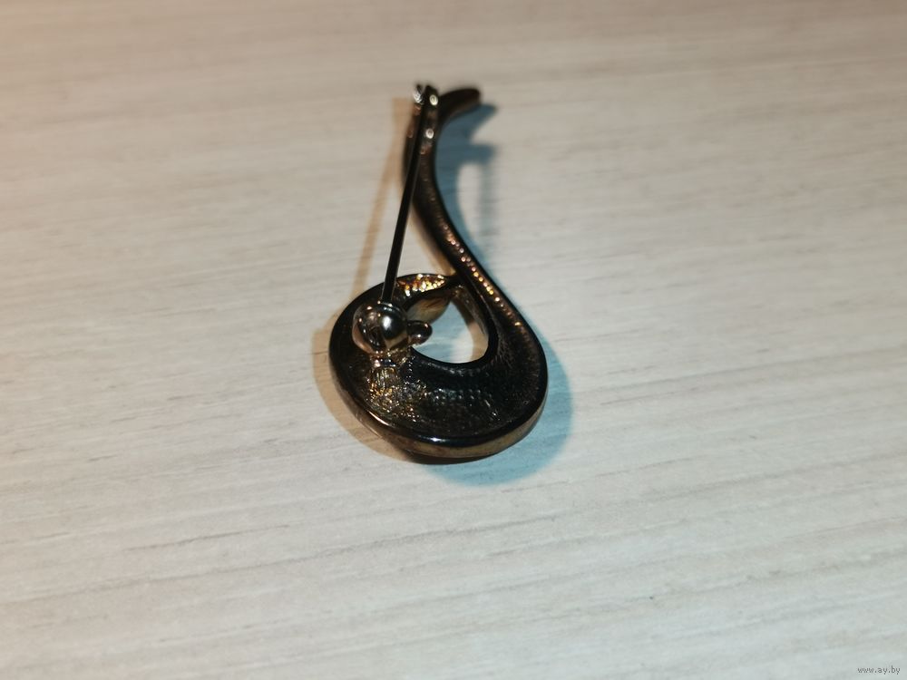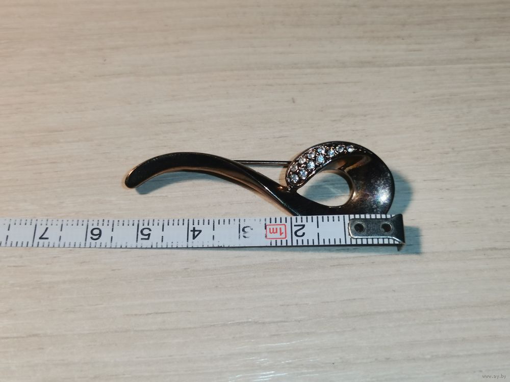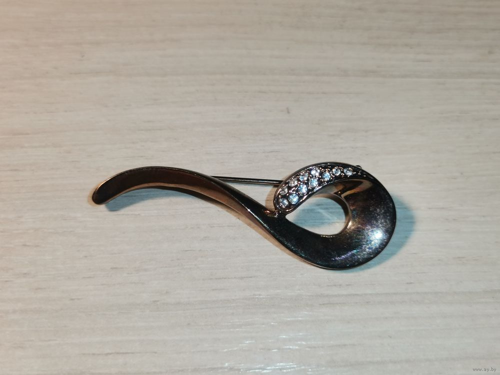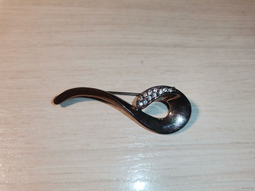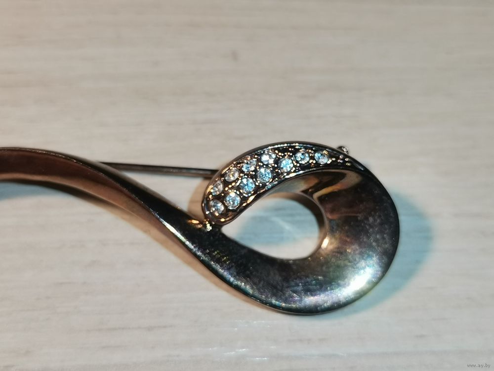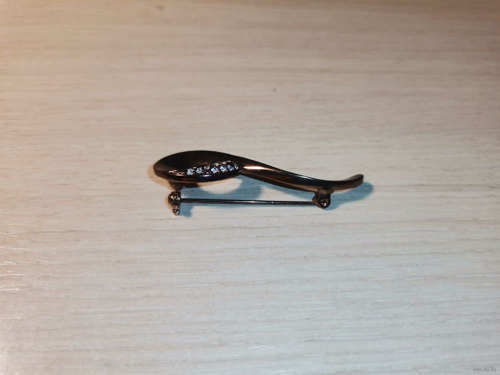 Металлическая брошь с вставками, размер 5.5*2 см.
