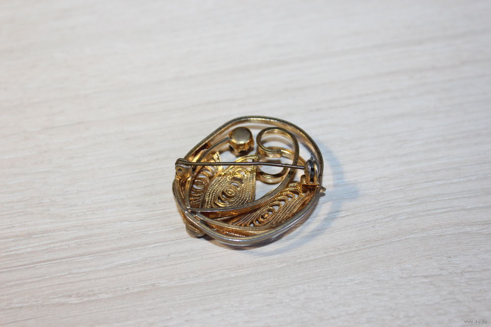 Металлическая брошь с вставкой, времён СССР, диаметр 4 см.