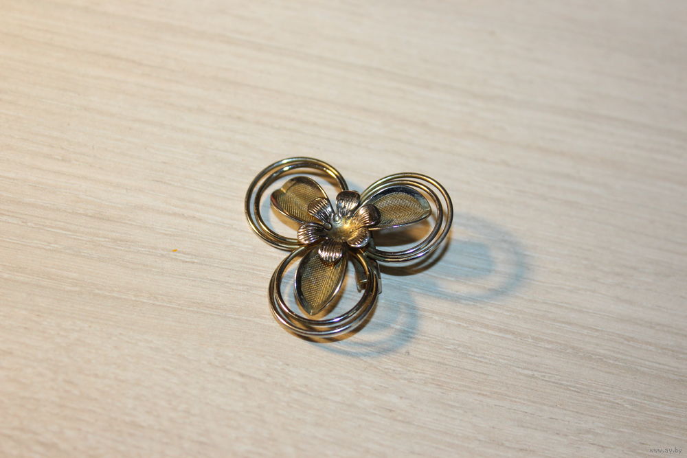 Металлическая брошь "Трёхлистник", времён СССР, размер 4*4 см.