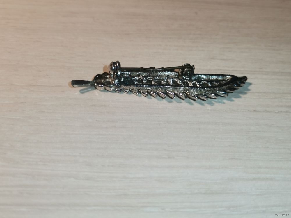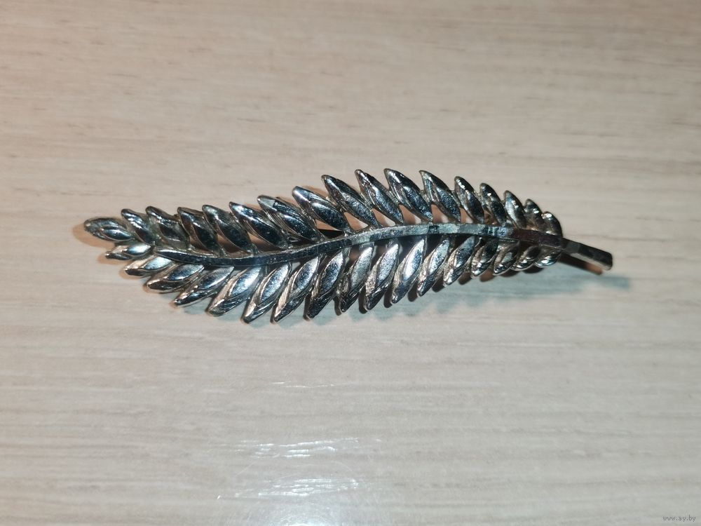 Металлическая брошь "Веточка", размер 6*1.5 см., замок рабочий.