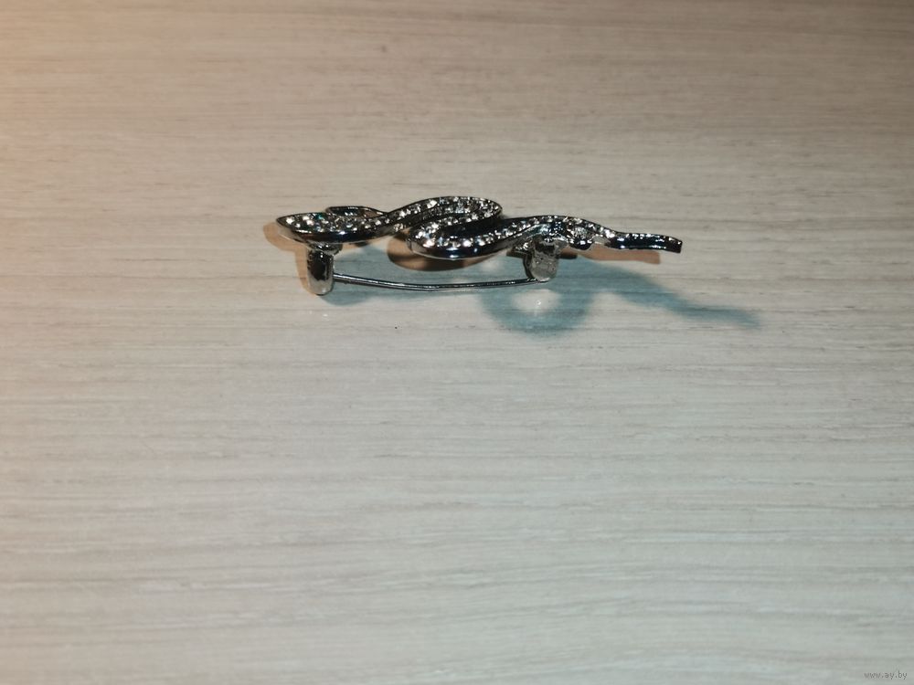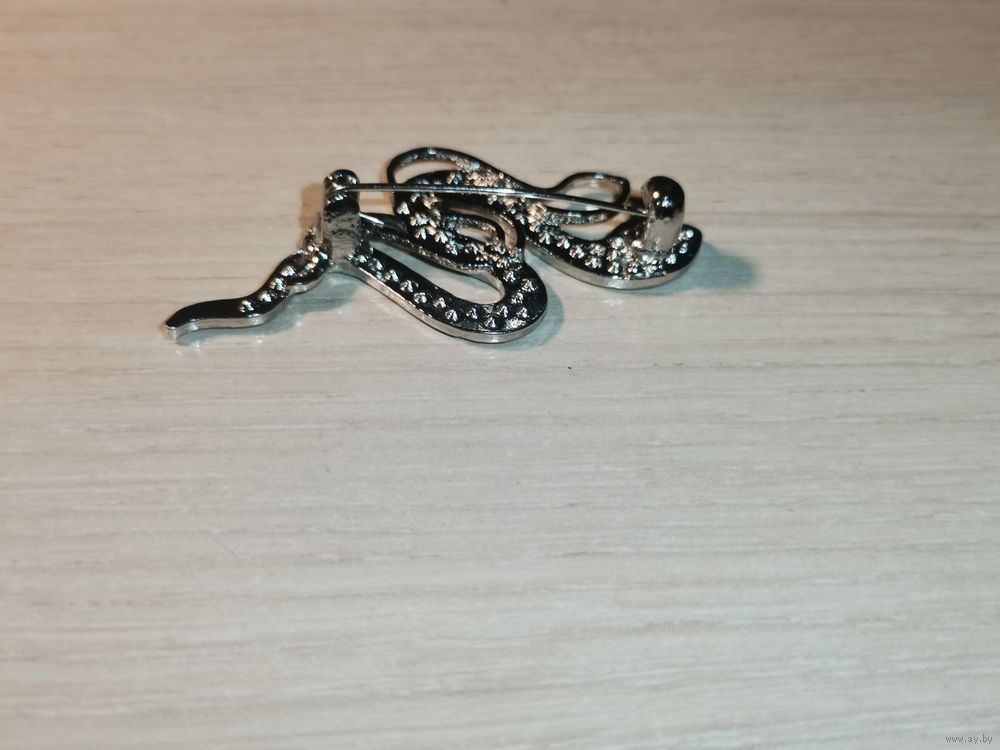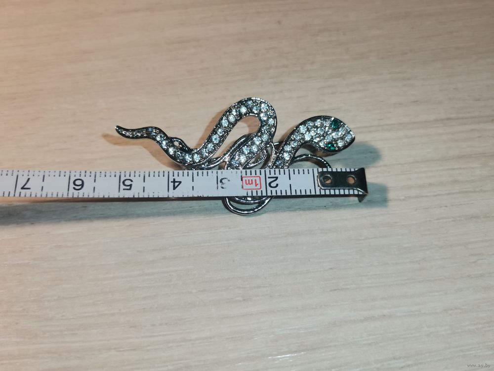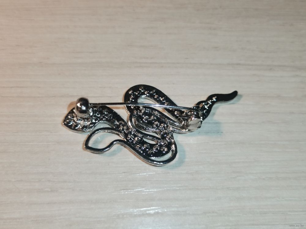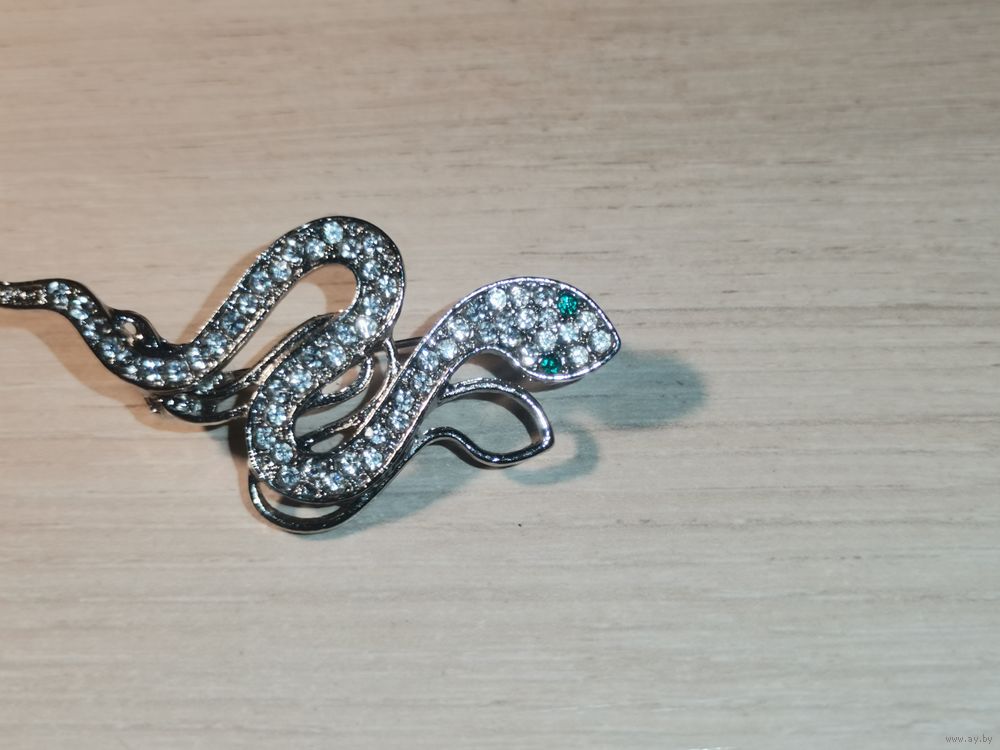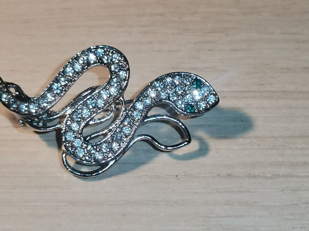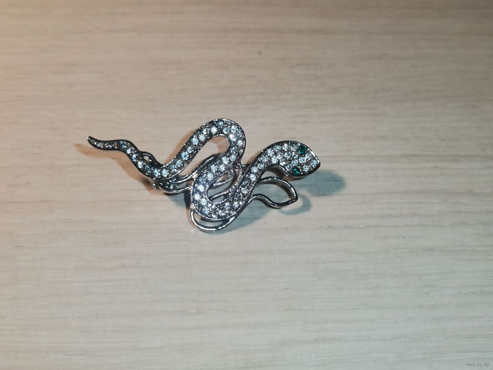 Металлическая брошь "Змея", с множеством вставок, размер 5*2.5 см.