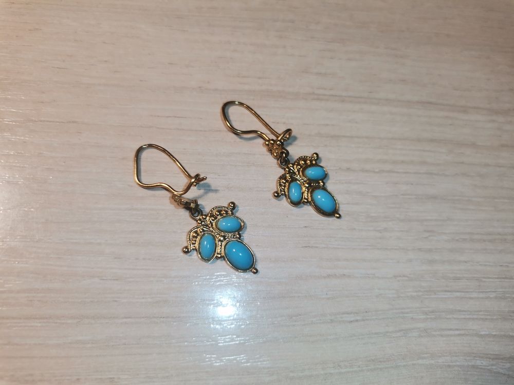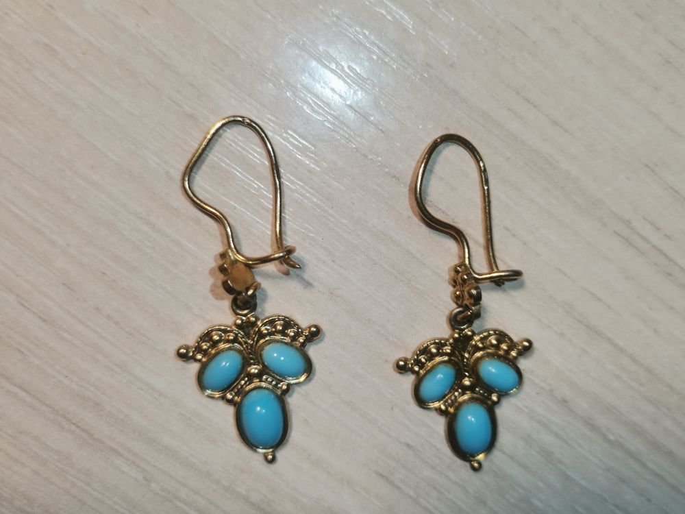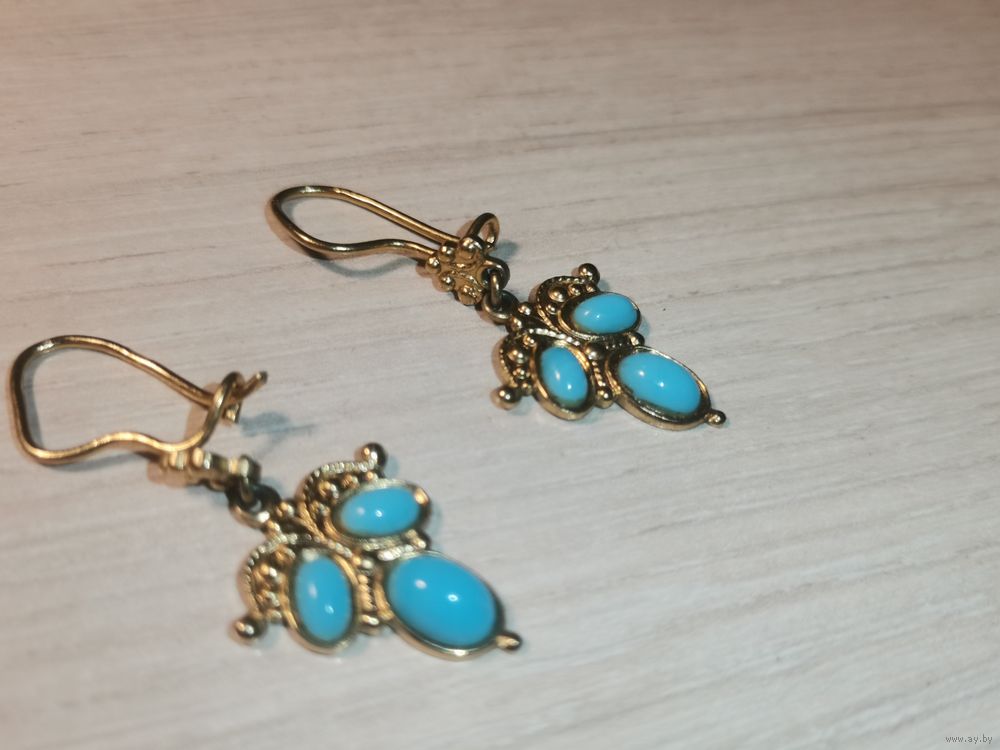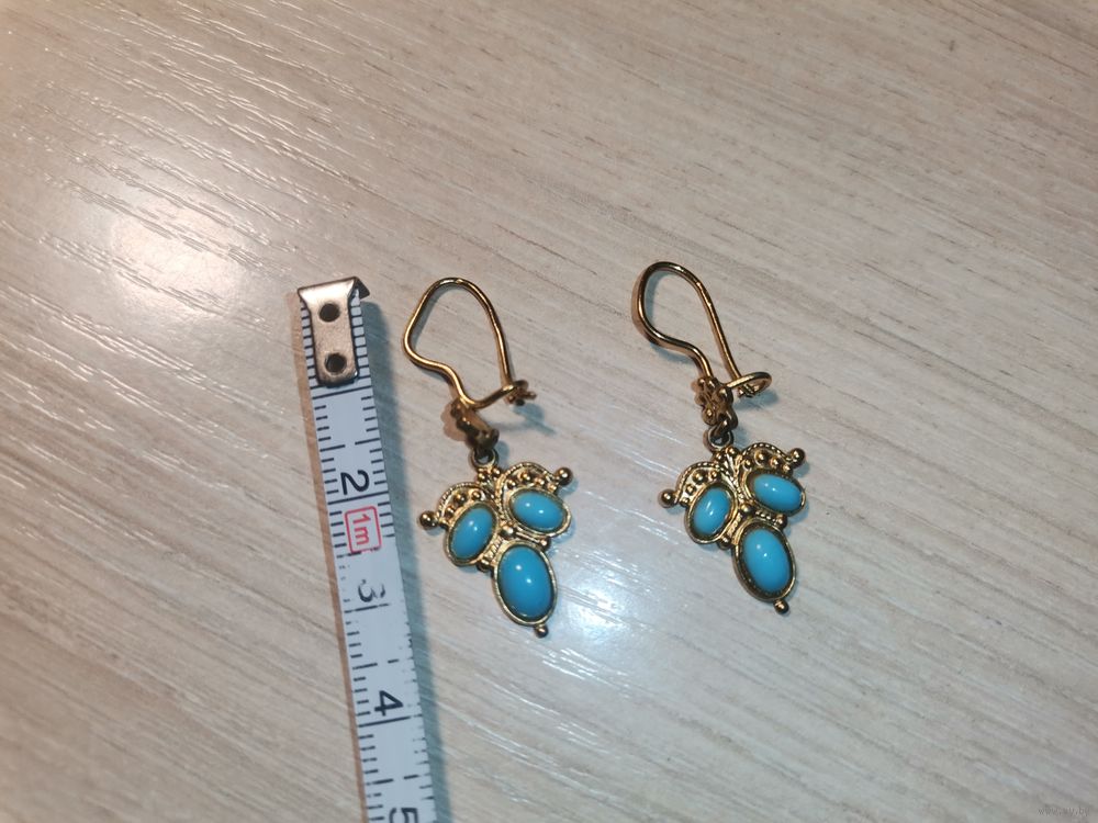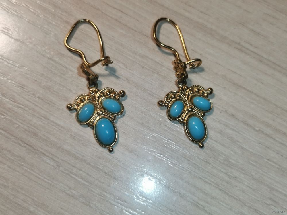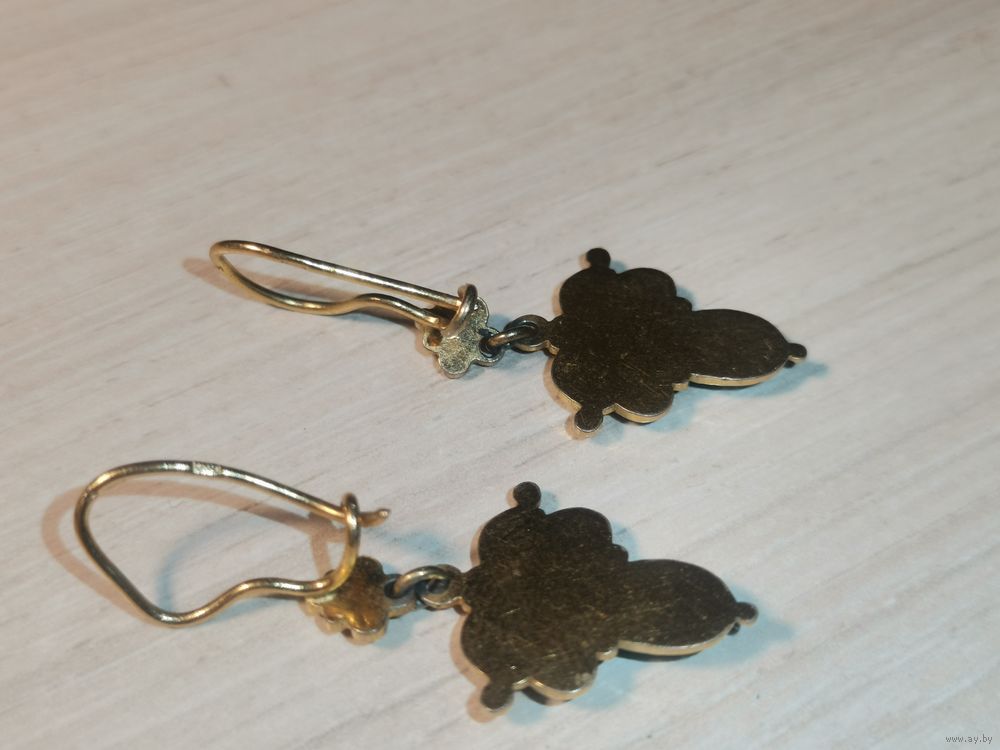 Металлические, позолоченные серьги с вставками из твёрдого материала, клеймо МК 0.