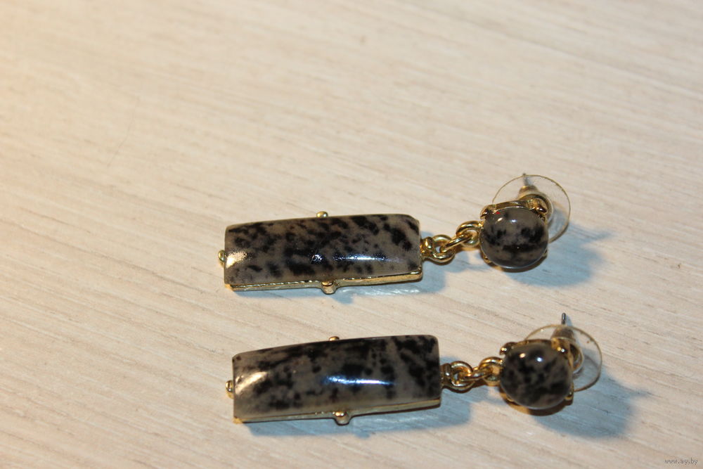 Металлические серьги с пластиковыми вставками (под стекло), длина 5 см.
