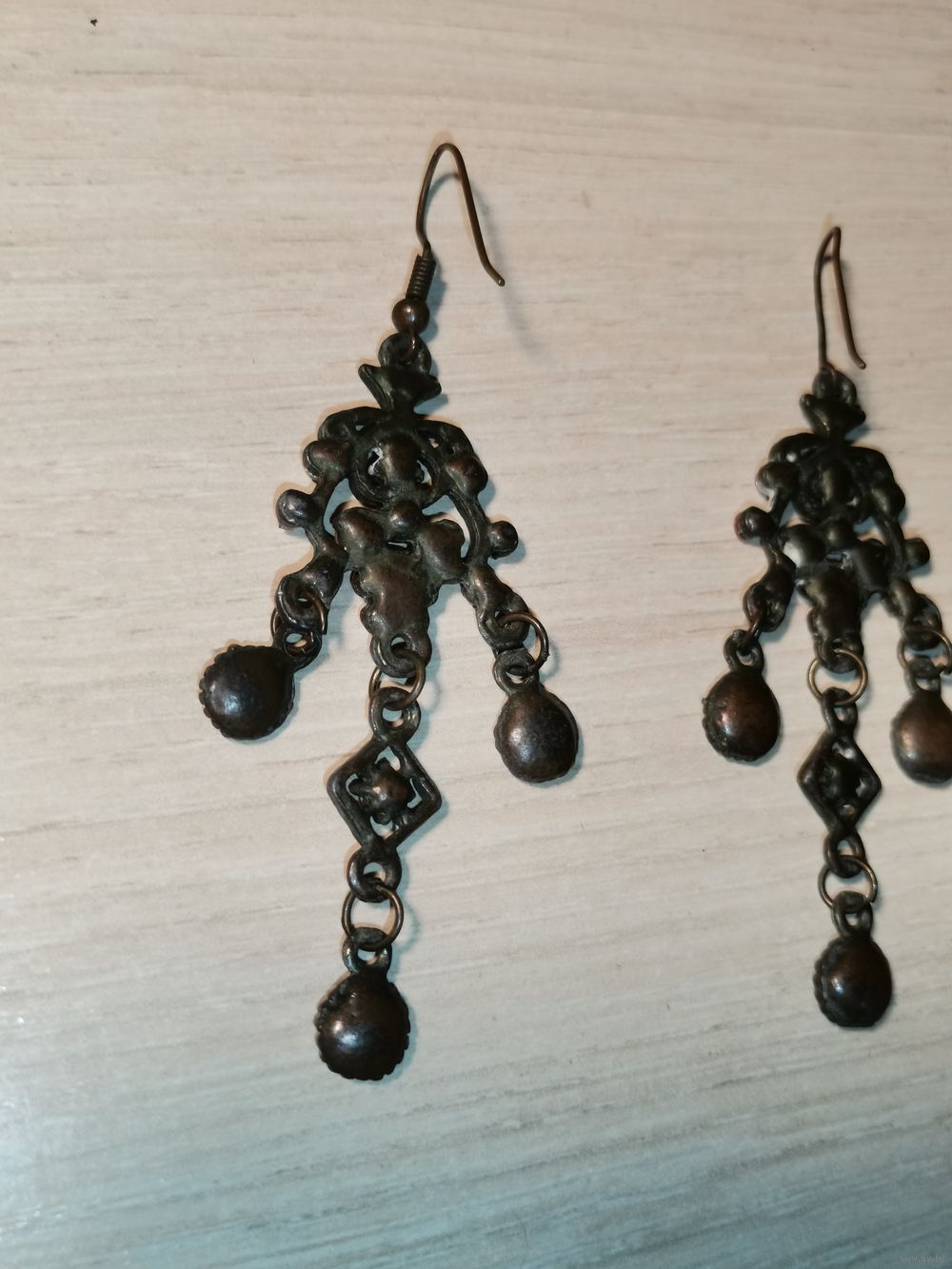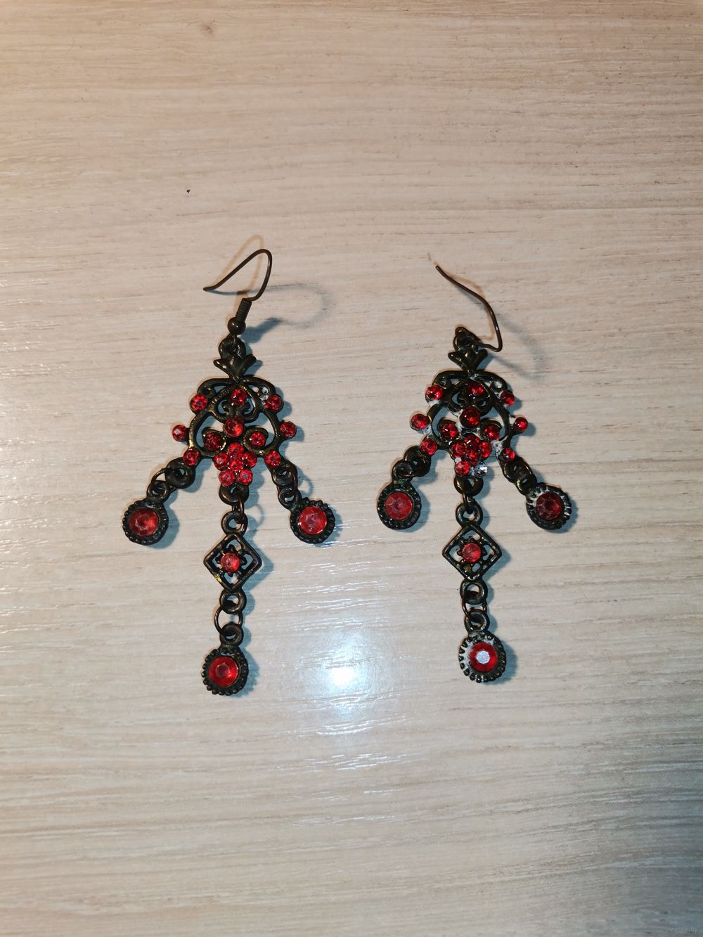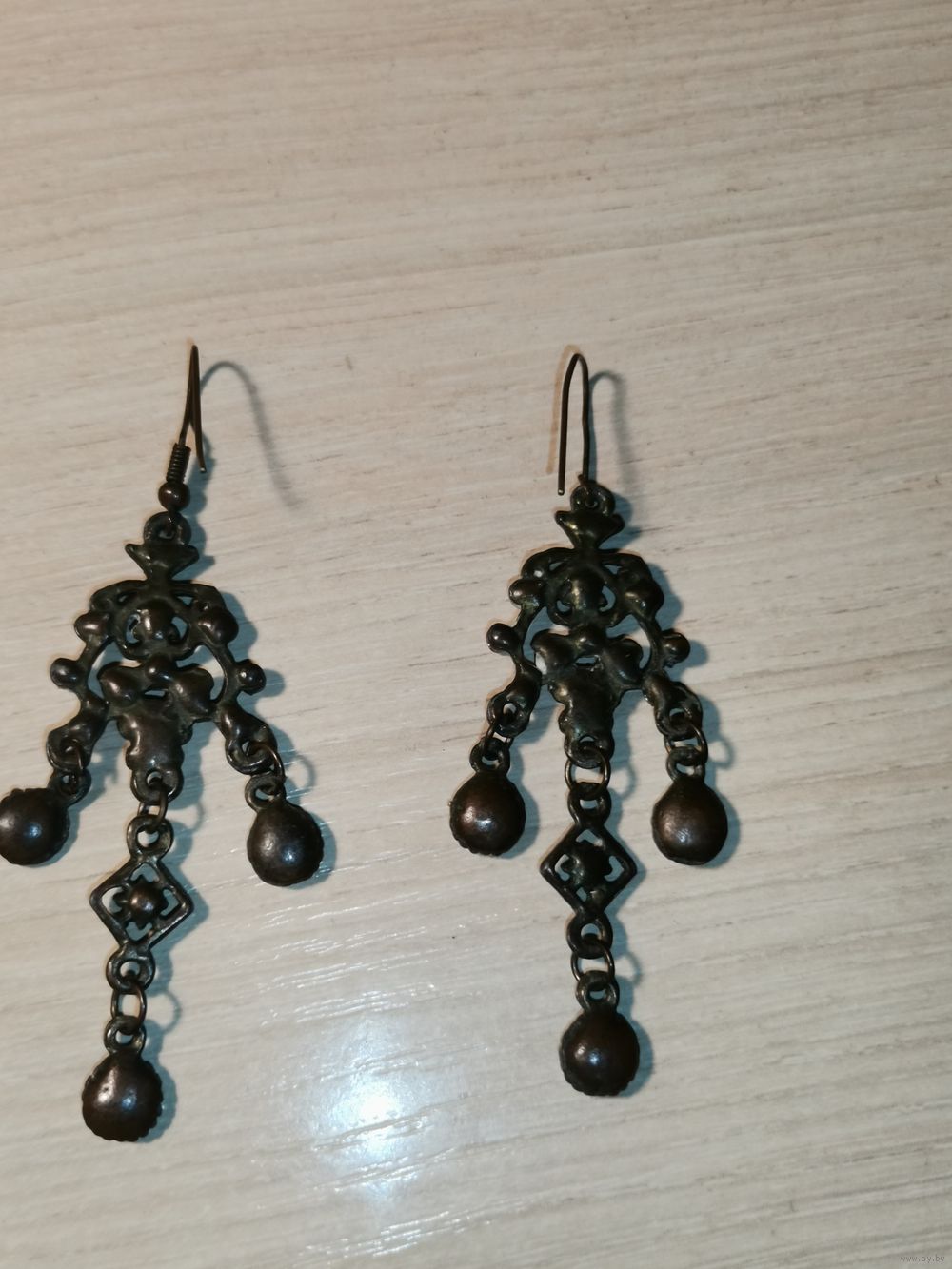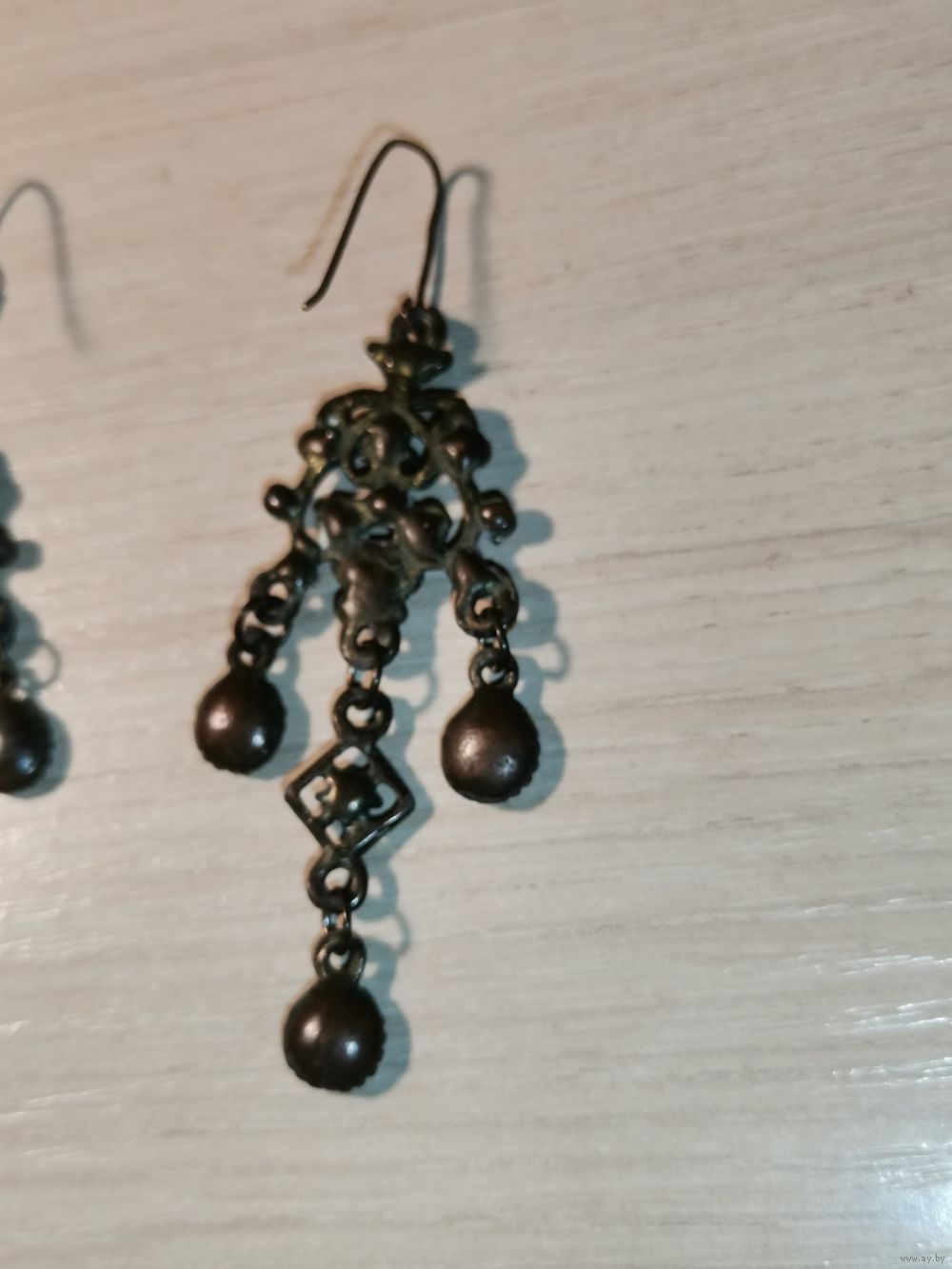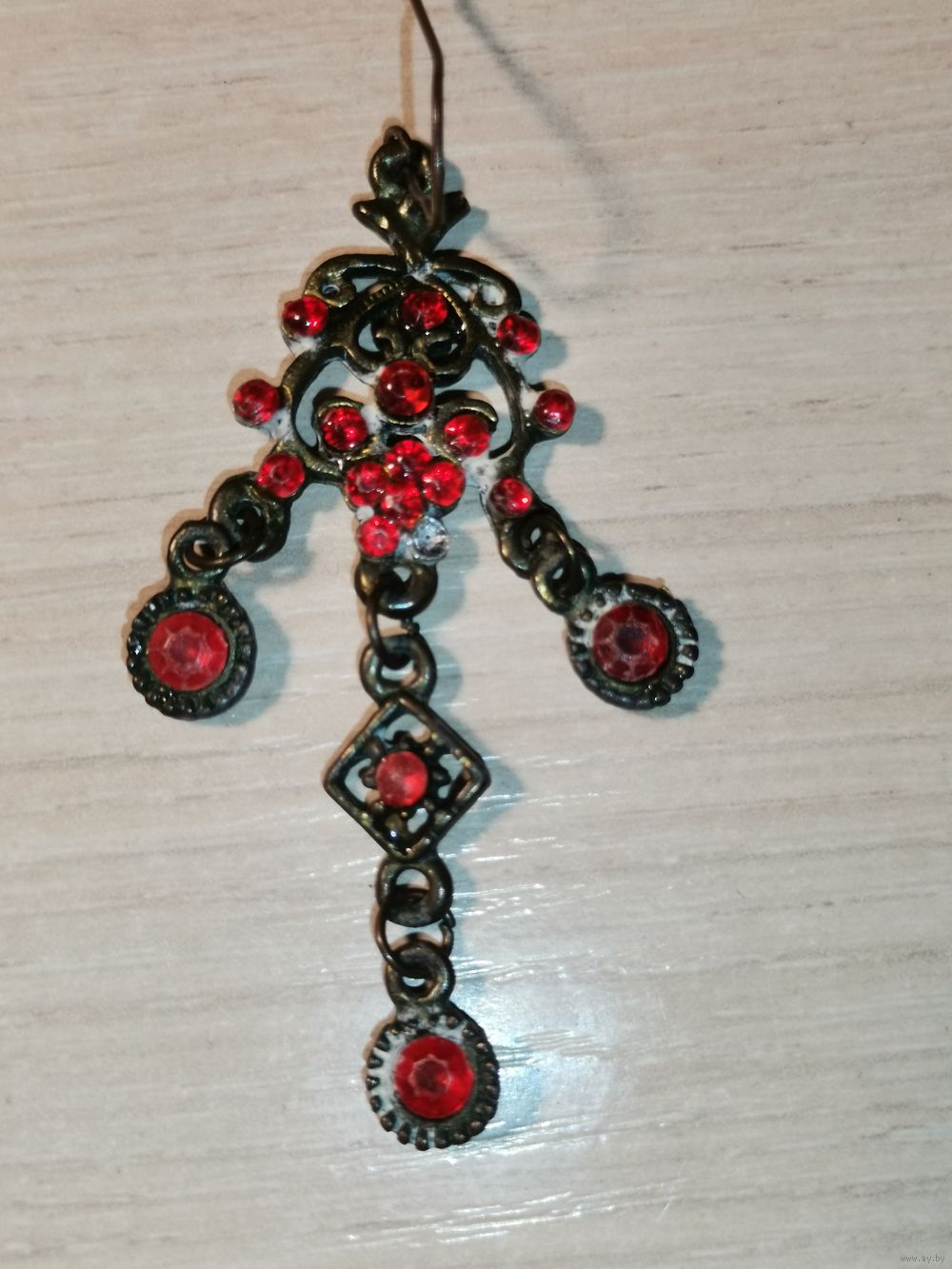 Металлические серьги с вставками, отсутствует одна маленькая вставка.