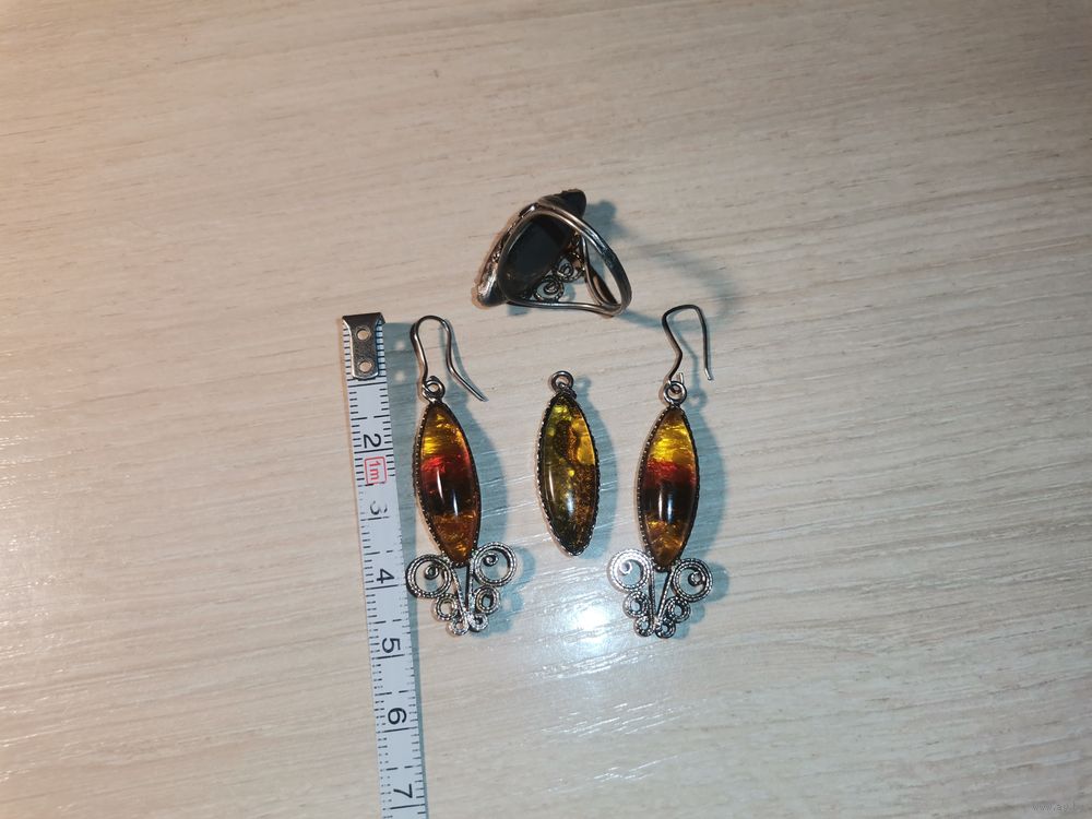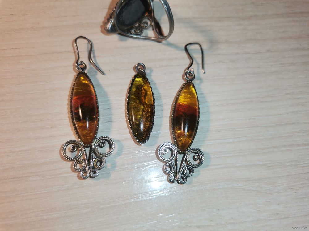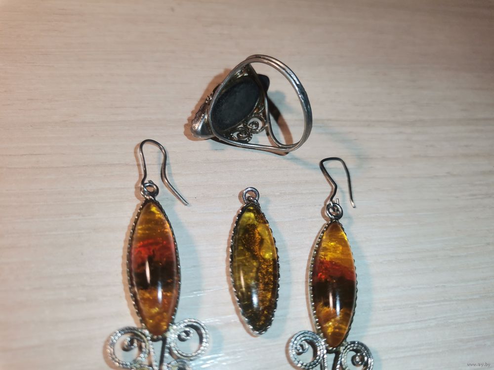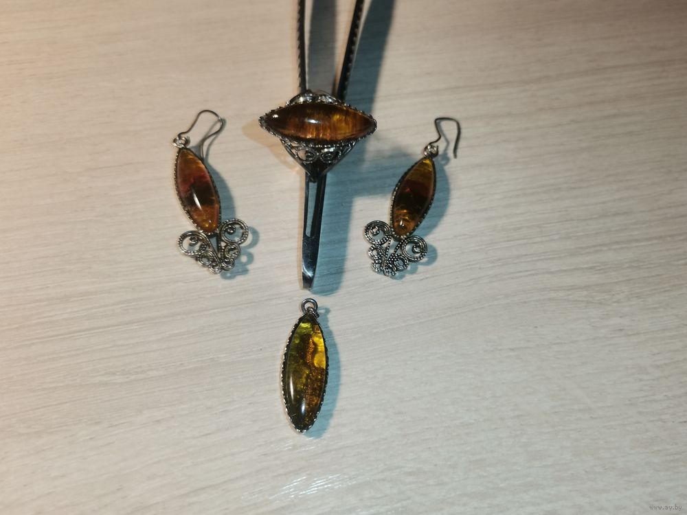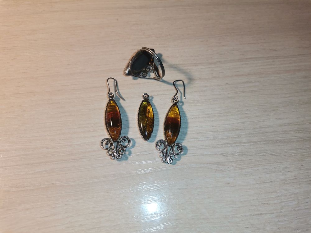 Металлический комплект с вставками под янтарь.