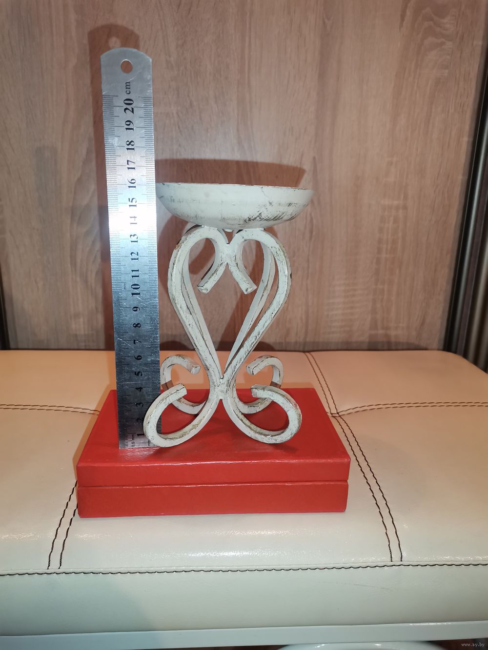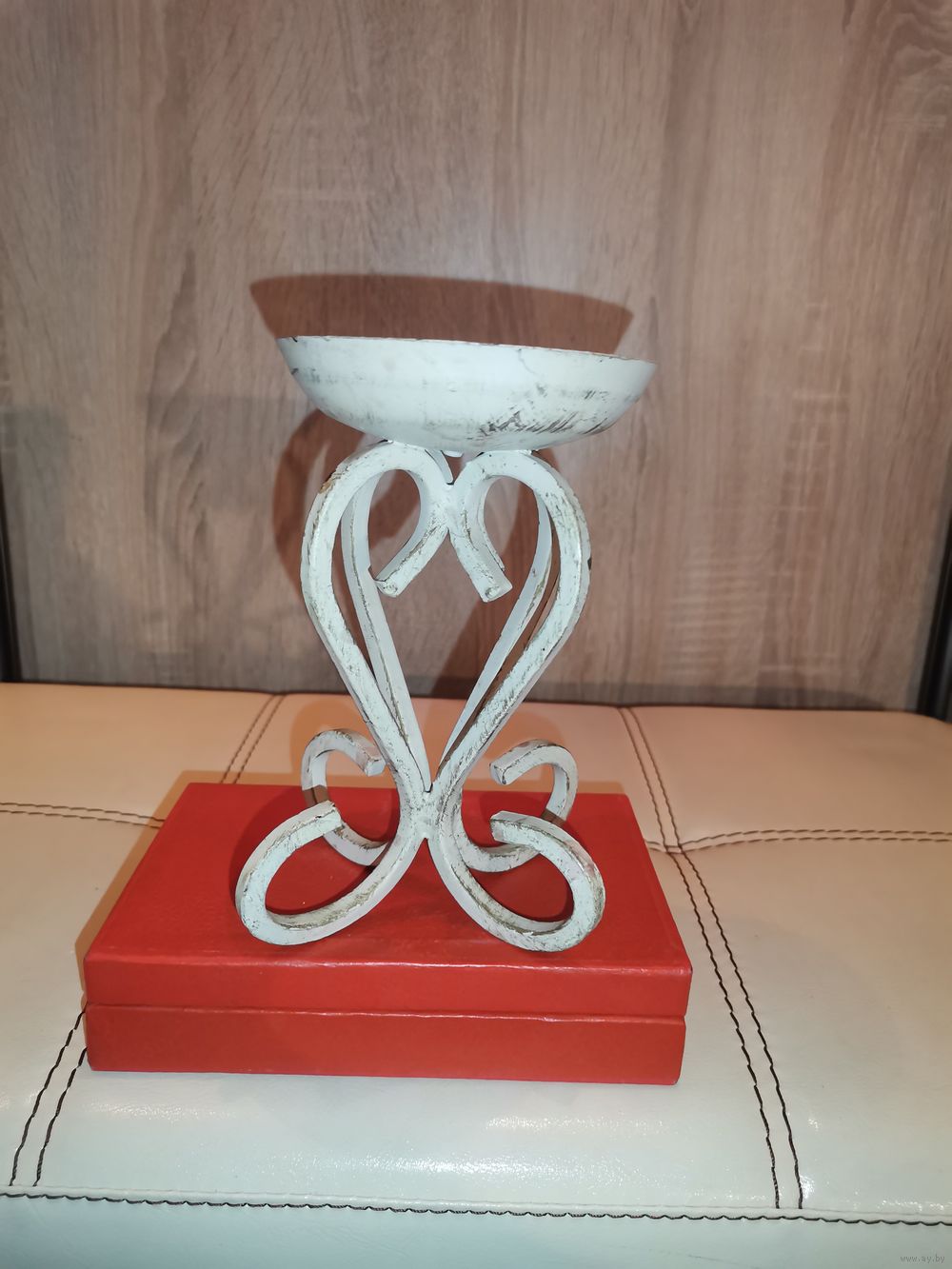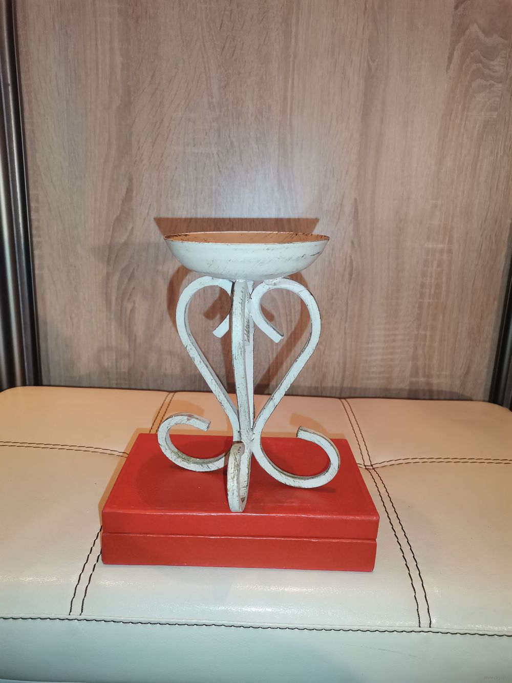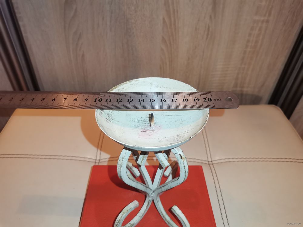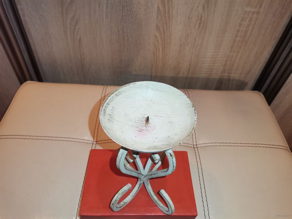 Металлический подсвечник под свечу большого диаметра, высота 16 см.