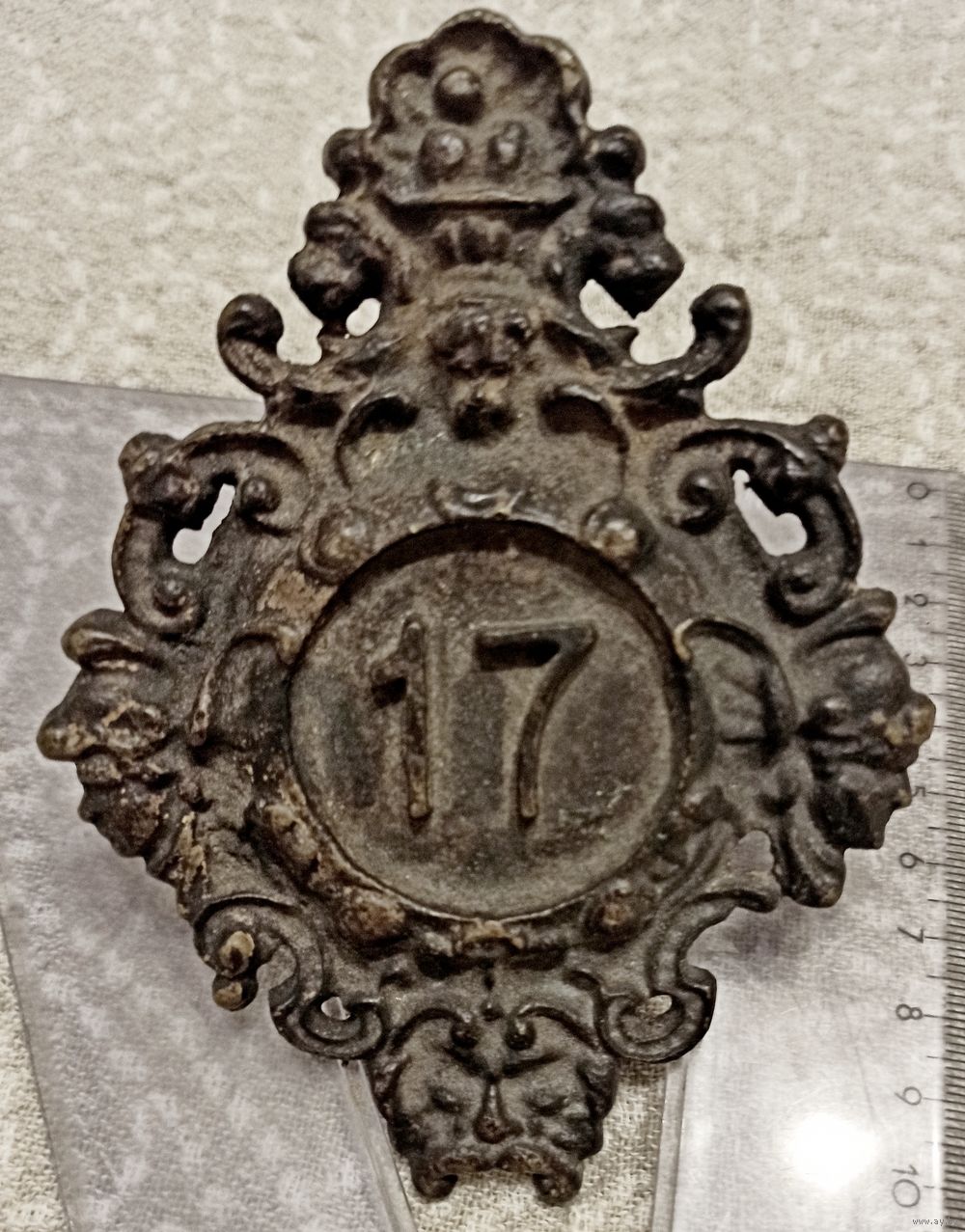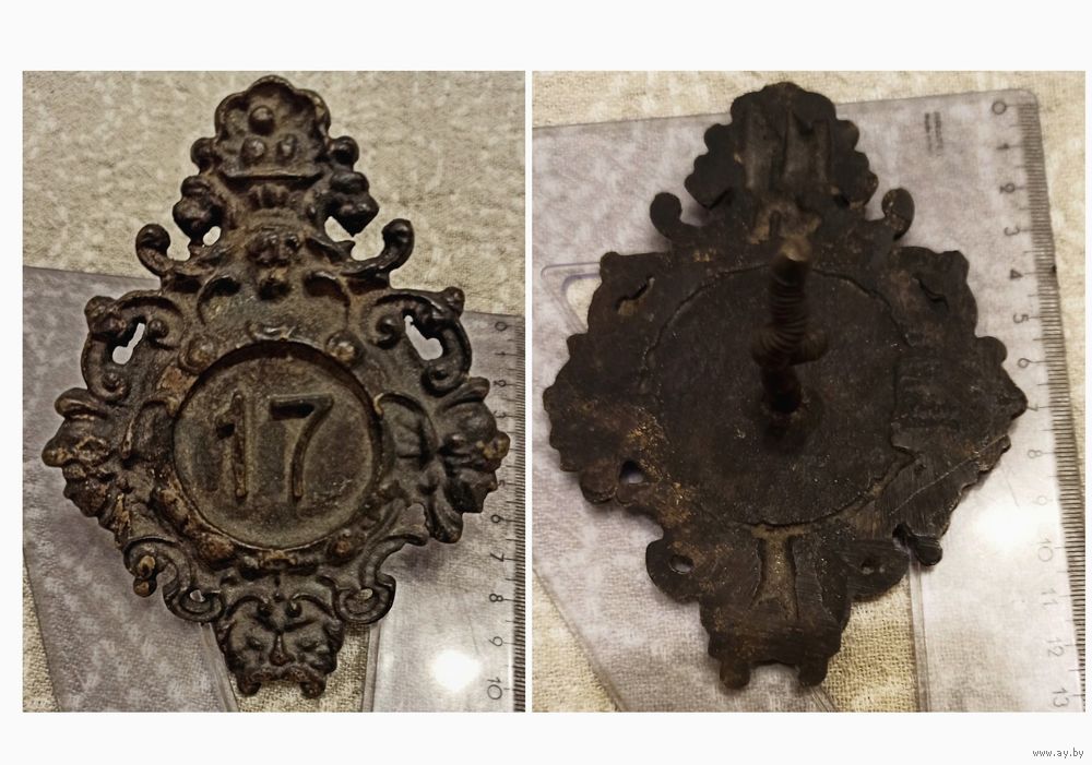 Металлический старинный номерной знак частного дома или квартиры с номером 17 ( периода 19-начала 20 века ?????) . Состояние хорошее, без потерь, реставрации и чистки...см на фото , имеются следы бытования. Спасибо за интерес к лоту. Покупатель первым выходит на связь, уточняя вопросы встречи и оплаты. Оплата Наличные, Банковский перевод, Банковская карта, Контакт. Телефон для связи указан в контактных данных, вопросы и предложения желательно присылать через Viber. Передача предмета и получение денег в г.Минске, возможна встреча в рабочие дни по договоренности . Расчет наличными с продавцом при получении лота. Пересылка по почте возможна. Если у Вас есть другие варианты - предварительно оговаривайте их по телефону.