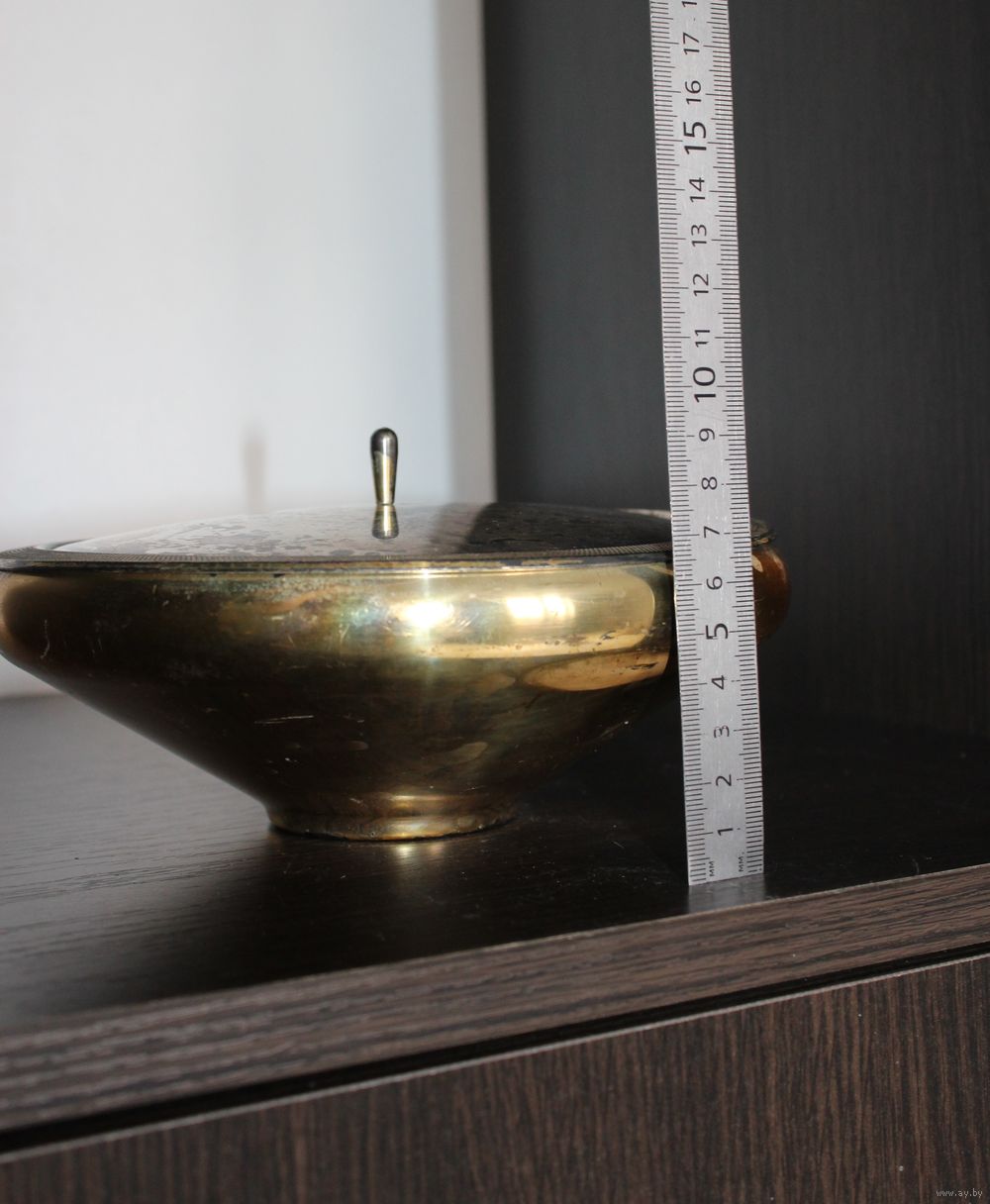 Высота с крышкой 9,5 см., диаметр блюдо 18 см., диаметр стеклянно вставки 17,5 см., высота 6 см.