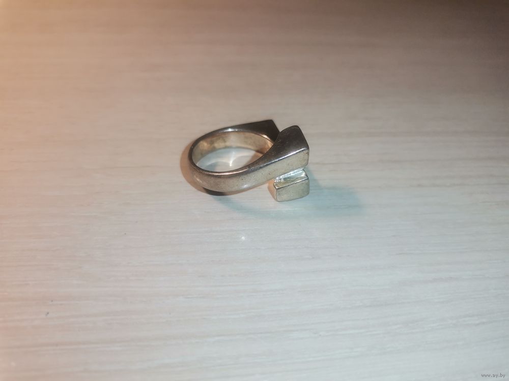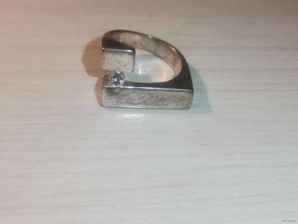 Металлическое кольцо с вставкой в посеребрении, клейм нет.