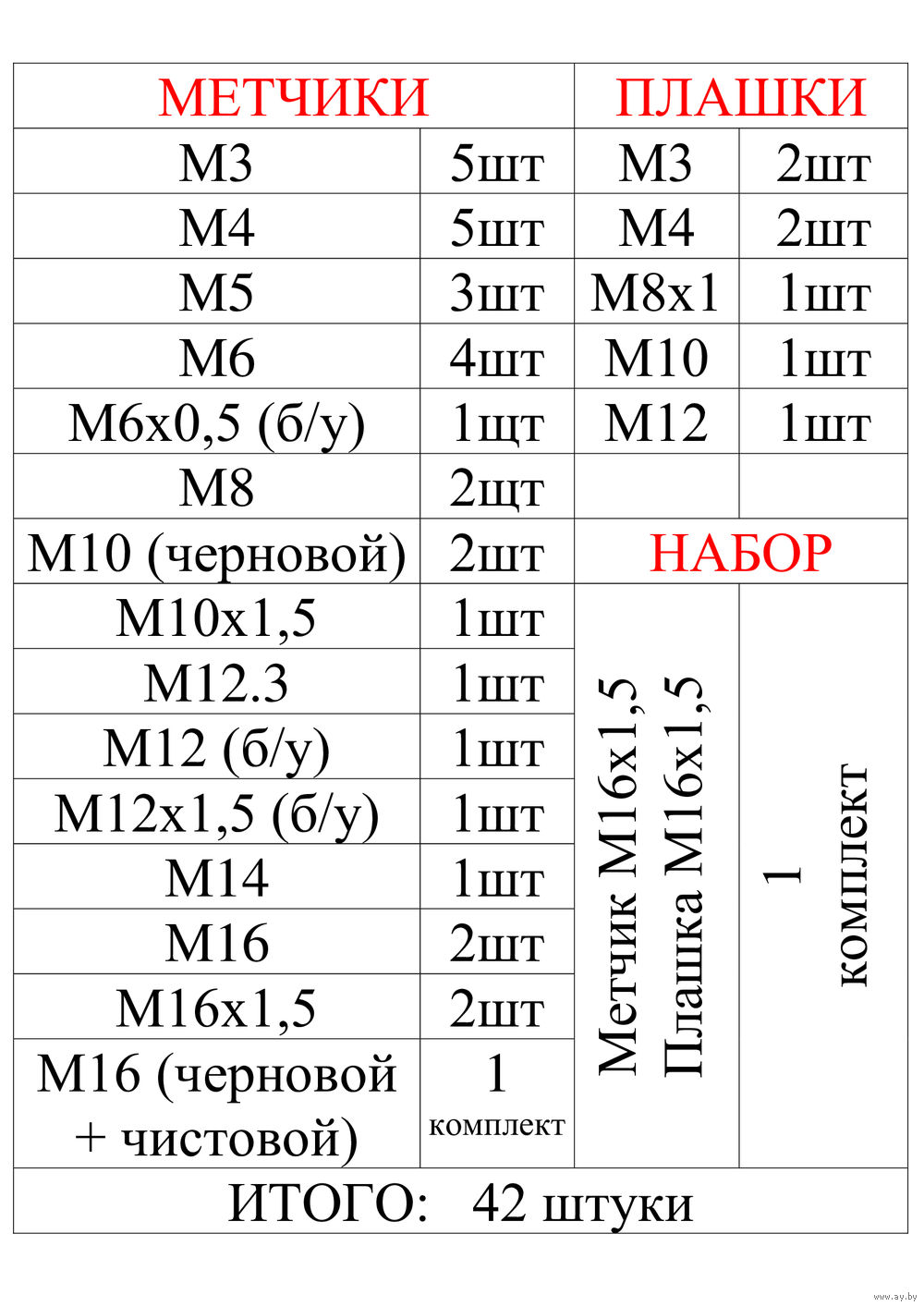 Все метчики и плашки НОВЫЕ, никогда не были в использовании (кроме трех: М6х0,5 (б/у), М12 (б/у), М12х1,5 (б/у)).