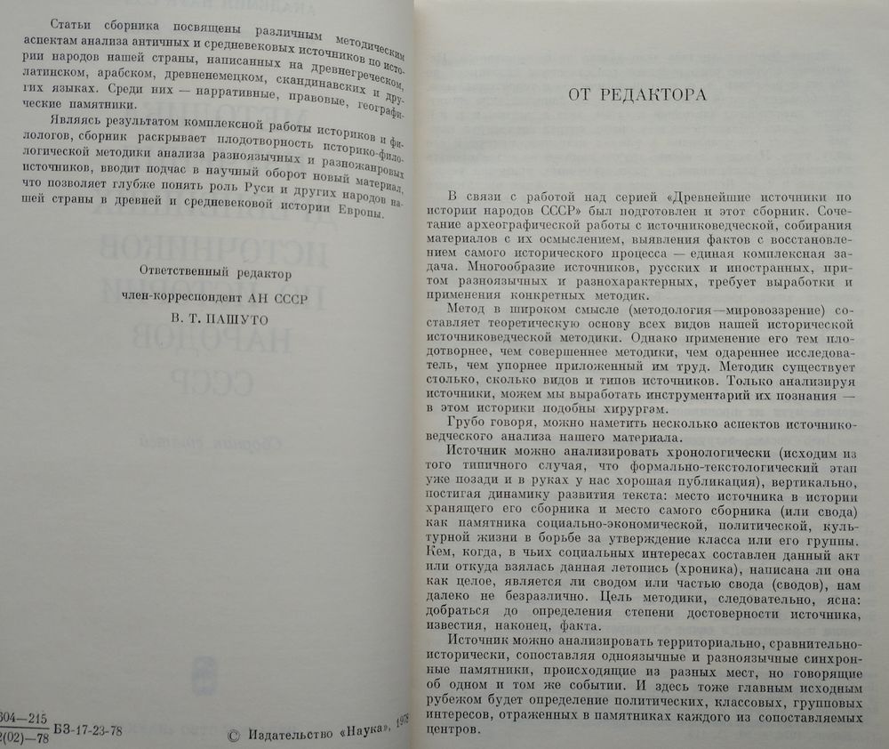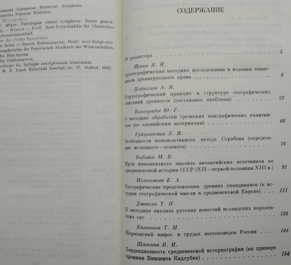 Большой формат. Тираж 2000 экз. 214 стр. Статьи сборника посвящены различным методическим аспектам анализа античных и средневековых источников по истории народов нашей страны, написанных на древнегреческом, латинском, арабском, древненемецком, скандинавских и других языках. Среди них - нарративные, правовые, географические памятники. Являясь результатом комплексной работы историков и филологов, сборник раскрывает плодотворность историко-филологической методики анализа разноязычных и разножанровых источников, вводит подчас в научный оборот новый материал, что позволяет глубже понять роль Руси и других народов нашей страны в древней и средневековой истории Европы.