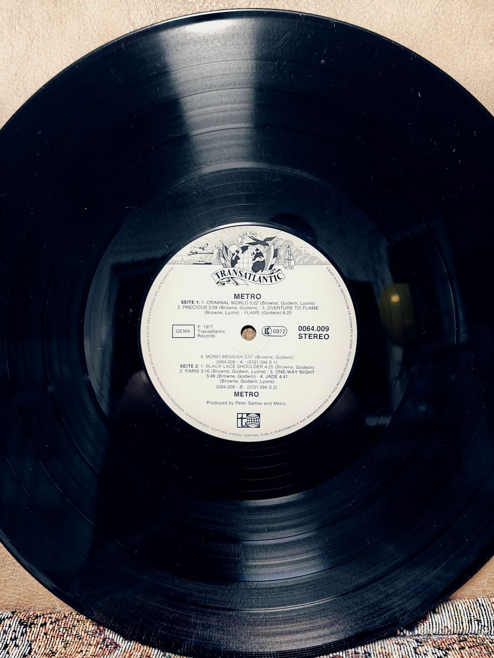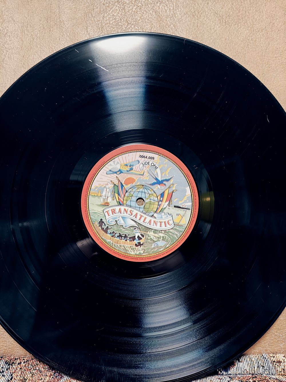 Есть одна писяга и пару микроцарапин от конверта (на фото). Щелчков нет, но песочек есть местами. Отличный симфоник-рок!