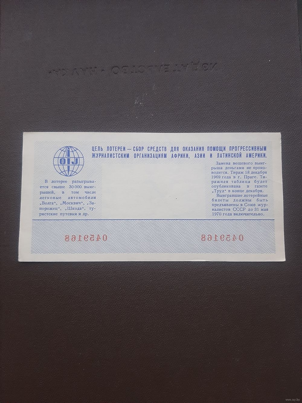 Международная лотерея солидарности журналистов 1969. С 1 рубля