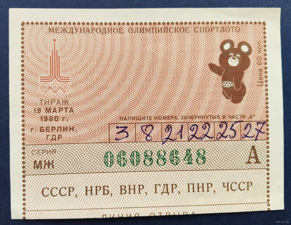 Международное олимпийское спортлото "Олимпиада-80". Тираж 19 марта 1980 г.Берлин.
