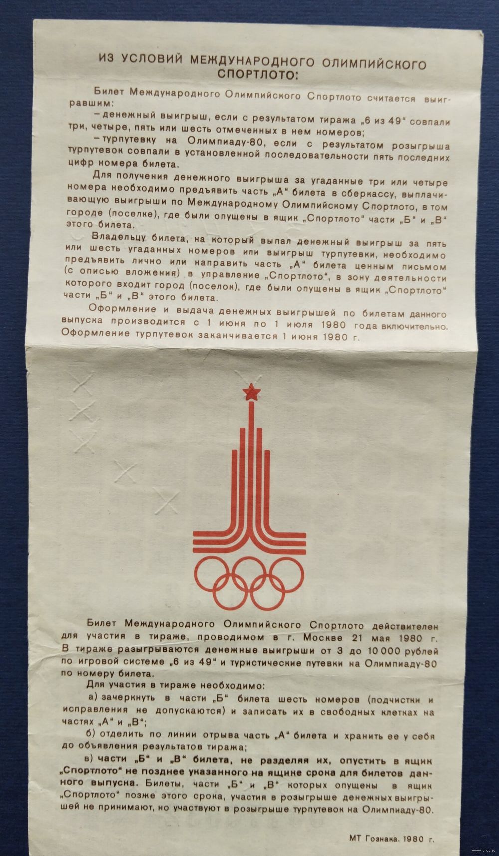 Международное олимпийское спортлото "Олимпиада-80". Тираж 21 мая 1980 г.Москва.