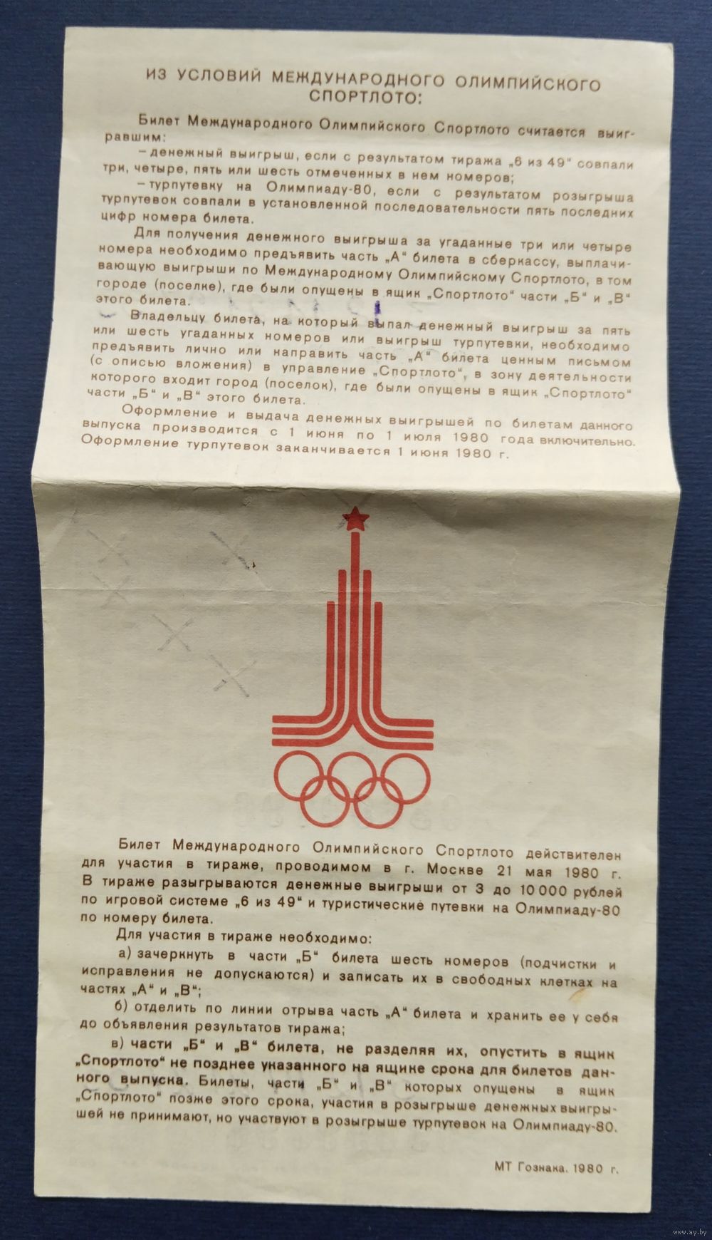 Международное олимпийское спортлото "Олимпиада-80". Тираж 21 мая 1980 г.Москва.