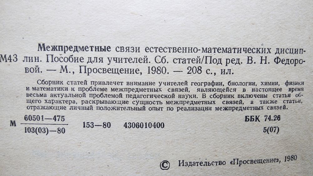 Сборник статей должен привлечь внимание учителей географии, биологии, химии, физики и математики к проблеме межпредметных связей.