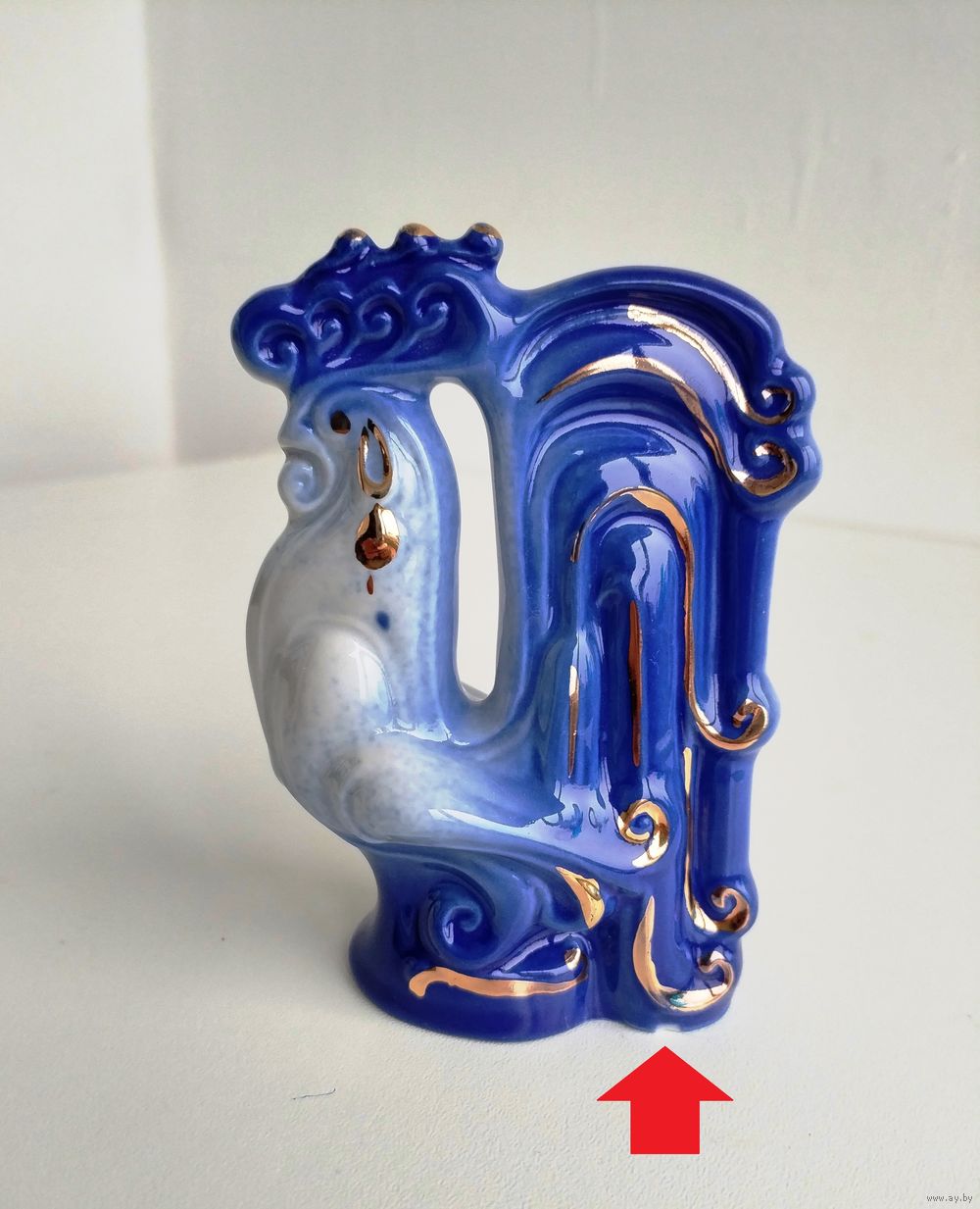 Высота 10,5 см, без трещин и потертостей, есть микроскол снизу под красной стрелкой.