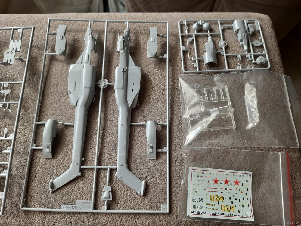 ДВЕ модели ОДНИМ ЛОТОМ. Ми-28Н полностью комплектный,в коробке. Ми-28А без коробки и одного литника на ТРИ детали (указан на фото).
