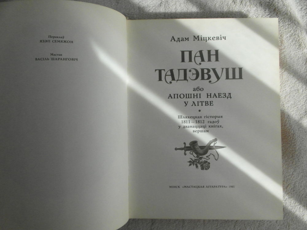 Міцкевіч А. Пан Тадэвуш, або Апошні наезд у Літве. Шляхецкая гісторыя 1811--1812 гадоў у 12 кнігах вершам. Мицкевич А. Пан Тадеуш, или Последний набег на Литву. Дворянская история 1811-1812 г. 1985 г.