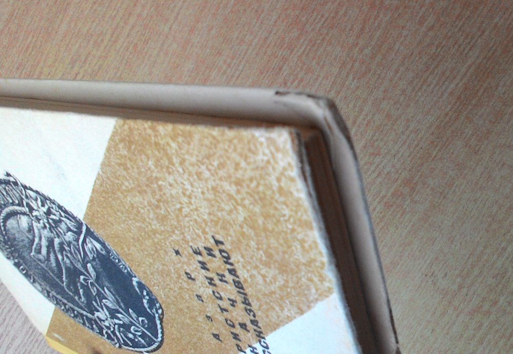 Состояние неплохое, но книжка для своих лет, понятно, чутка уставшая - суперобложка потрёпана, уголки книги сбиты.