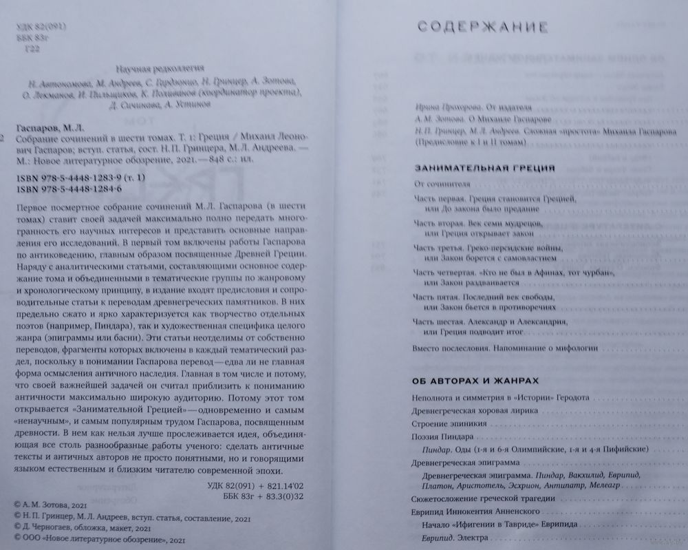 Большой энциклопедический формат. Тираж 2000 экз. 848 стр. Михаил Леонович Гаспаров — крупнейший отечественный филолог, литературовед, переводчик, лауреат Государственной премии России (1995), Пушкинской премии Российской академии наук, премий имени Андрея Белого и Бориса Пастернака, автор многочисленных трудов по античной литературе, поэтике и стиховедению, широко известен и у нас в стране, и за рубежом. Большой читательский успех имела его книга «Занимательная Греция: рассказы о древнегреческой культуре», выдержавшая несколько переизданий. "Занимательная Греция. Рассказы о древнегреческой культуре" - своеобразная энциклопедия древнегреческой культуры, из которой выросла вся новоевропейская и русская культура. В шести частях этой увлекательной книги (с IX по II в. до н. э.) рассматриваются и политика, и быт, и военное искусство, и философия, и театр, и поэзия - все в неразрывной связи друг с другом и с эпохой.