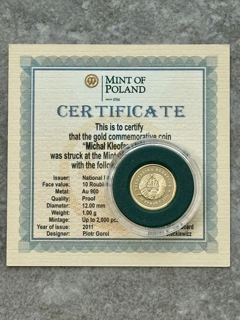 | Вес монеты | 1 г |