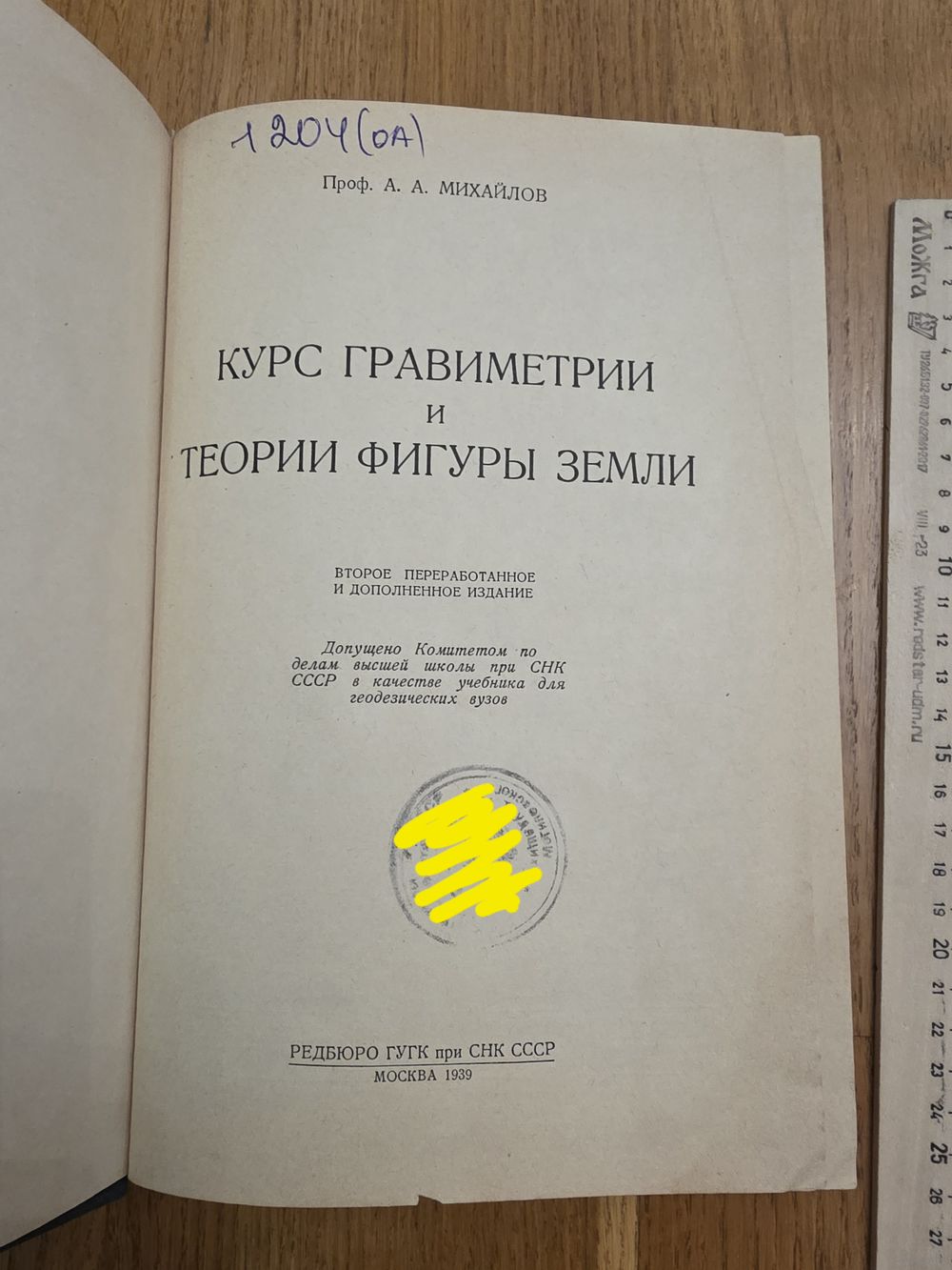 Михайлов А.А. Курс гравиметрии и теории фигуры Земли. 2-е переработанное и дополненное издание. М. Редбюро ГУГК при СНК СССР. 1939г. 432с.