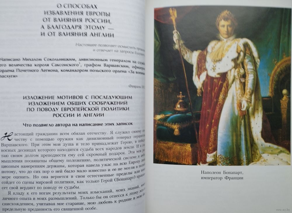 Большой энциклопедический формат. Тираж 1000 экз. 152 стр. В архиве Исторической службы сухопутных войск Франции, который расположен в Венсенском замке, найдена объемистая (около 200 страниц) рукопись на французском языке (фонд MR. 1490) — записки, принадлежащие перу польского генерала Михала Сокольницкого. Они адресованы Наполеону и датированы 10 февраля 1812 г. Михал Сокольницкий родился 28 сентября 1760 г. в Познани и учился в Варшавском кадетском училище, куда поступил в 1777 г. Сокольницкий был основателем и первым директором саперного училища в Вильно в 1789 г. Затем в 1791 г. он был послан правительством Польши в северную Германию в качестве инженера-гидрографа.