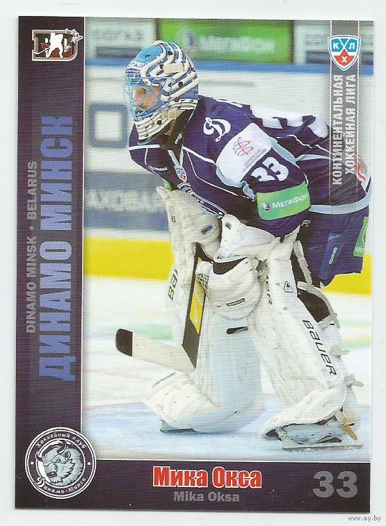 Мика Окса / "Динамо" Минск / базовая карточка/ Коллекция "SeReal Карточки КХЛ 2010-2011".