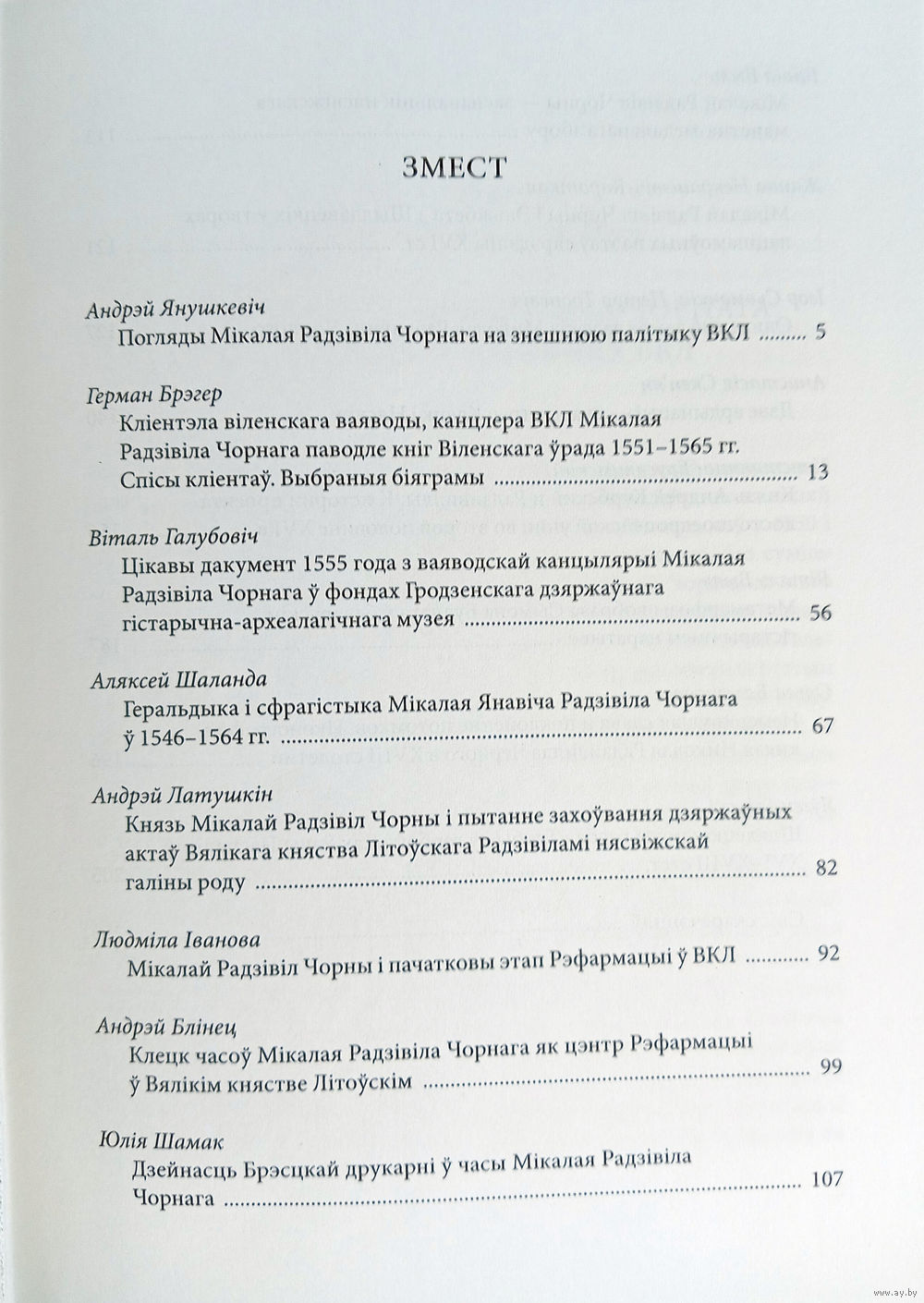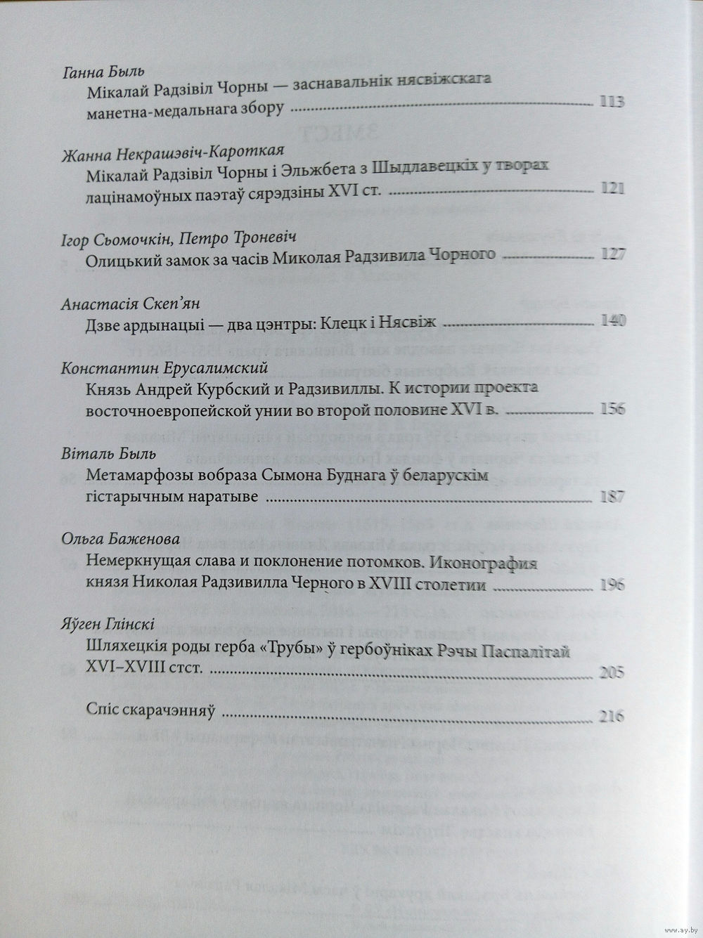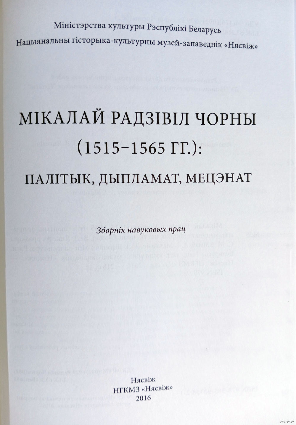 Мікалай Радзівіл Чорны (1515-1565 гг.): палітык, дыпламат, мецэнат : зборнік навук. прац / уклад. 3. Л. Яцкевіч ; рэдкал.: С. М. Клімаў, А. I. Мальдзіс, 3. Л. Яцкевіч ; Мін-ва культуры Рэсп. Беларусь, Нац. гіст.-культурны музей-запаведнік «Нясвіж». — Нясвіж: НГКМЗ «Нясвіж», 2016. — 218 с., іл.